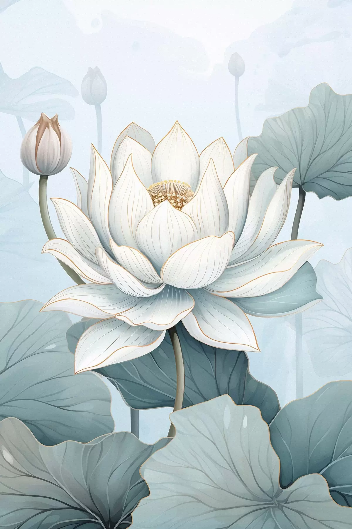 Wandbilder Lotusblumen, Imitation eines Aquarells s43340