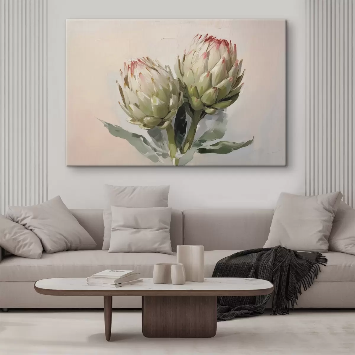 Drei Materialtypen stehen zur Verfügung: Economic Canvas - ein dichtes und haltbares Material für den Digitaldruck, identisch mit Malerleinwand, wasserfeste Oberfläche, realistische Wiedergabe von Details, mittelkörniges Material. Premium Canvas - die Textur ähnelt der einer Malerleinwand (verwobene kleine Fäden). Weiche, detaillierte Wiedergabe des Bildes auf einer matten Oberfläche. Eco-Premium - hochwertiges Gewebe aus 100% Baumwolle. Dank der natürlichen Baumwollfasern ist das Material langlebig und verschleißfest. Hervorragende Farbwiedergabe und Detailtreue.