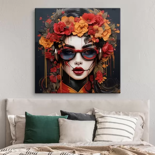 Wandbilder Frau mit Blumen auf dem Kopf, Streetart-Stil s43362