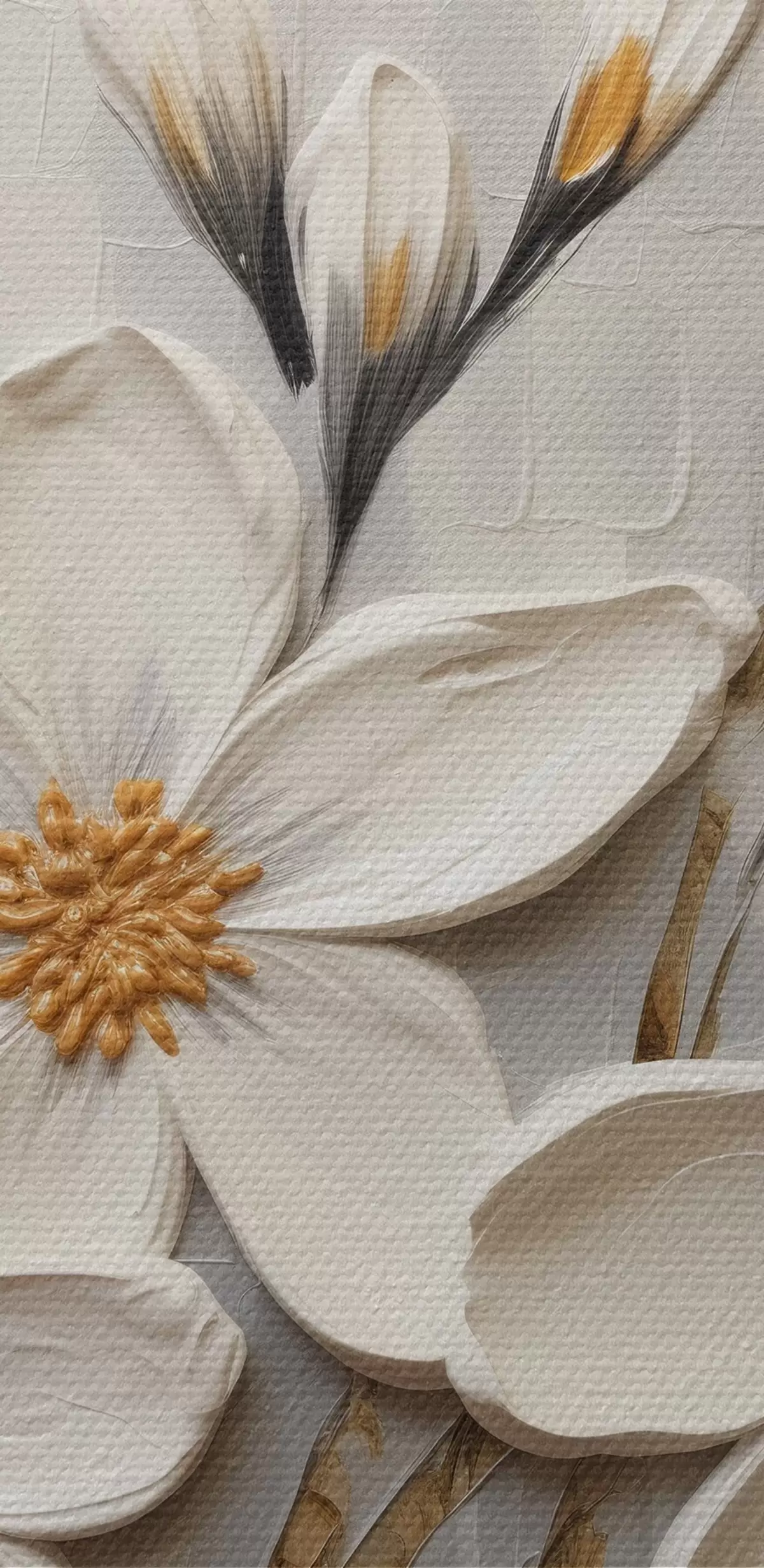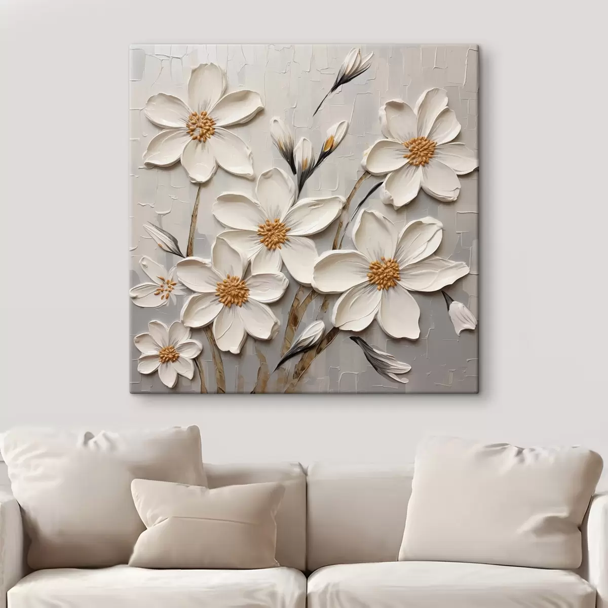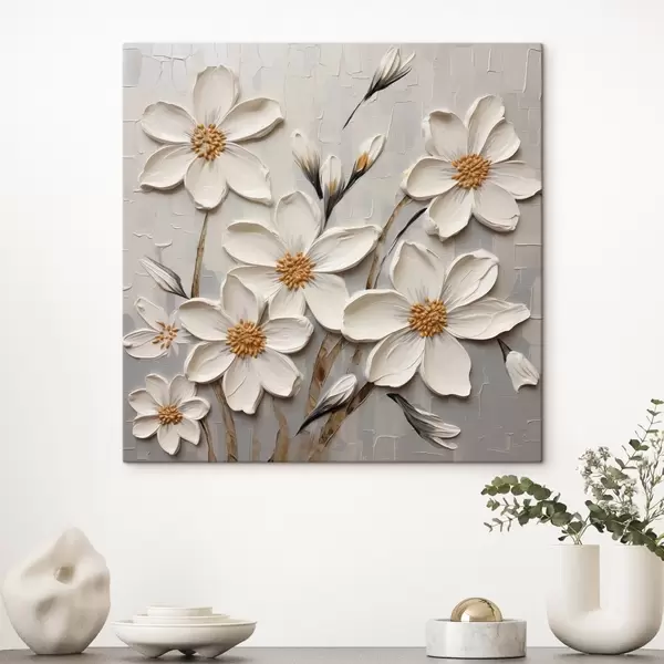 Wandbilder Weiße voluminöse Blumen im Malstil mit großen Pinselstrichen s43366