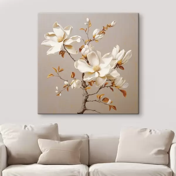Wandbilder Anmutiger Magnolienzweig in Beigetönen s43373
