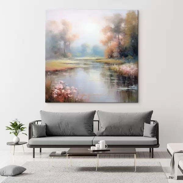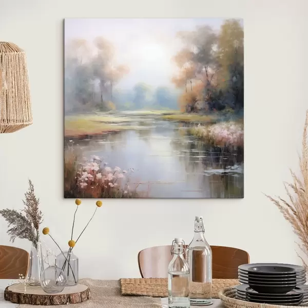 Wandbilder Waldnatur mit einem Fluss, Blumen und Bäumen Art. s43386