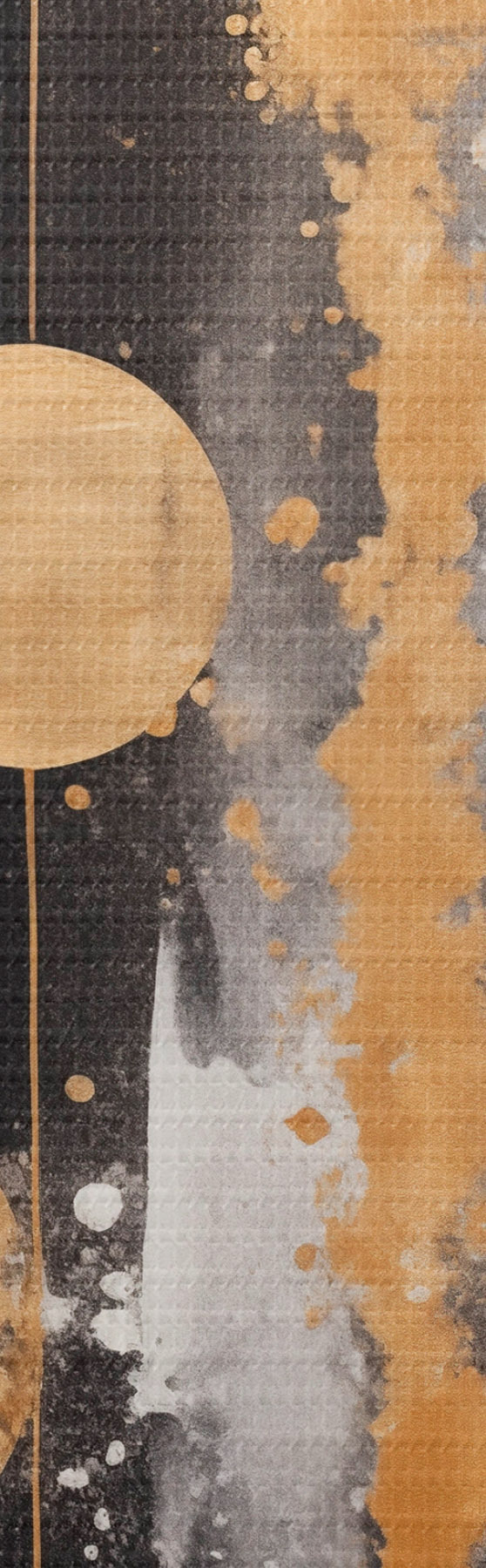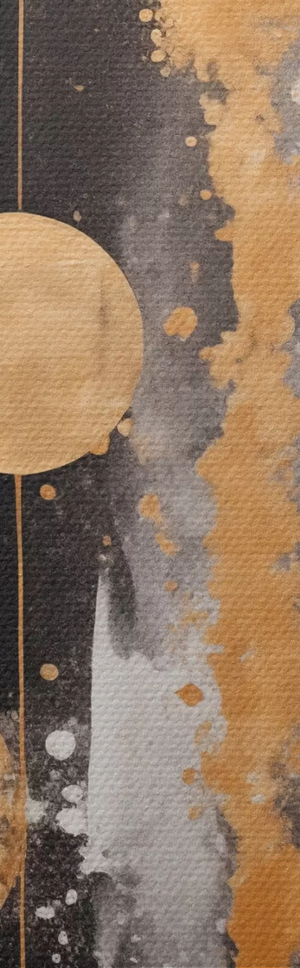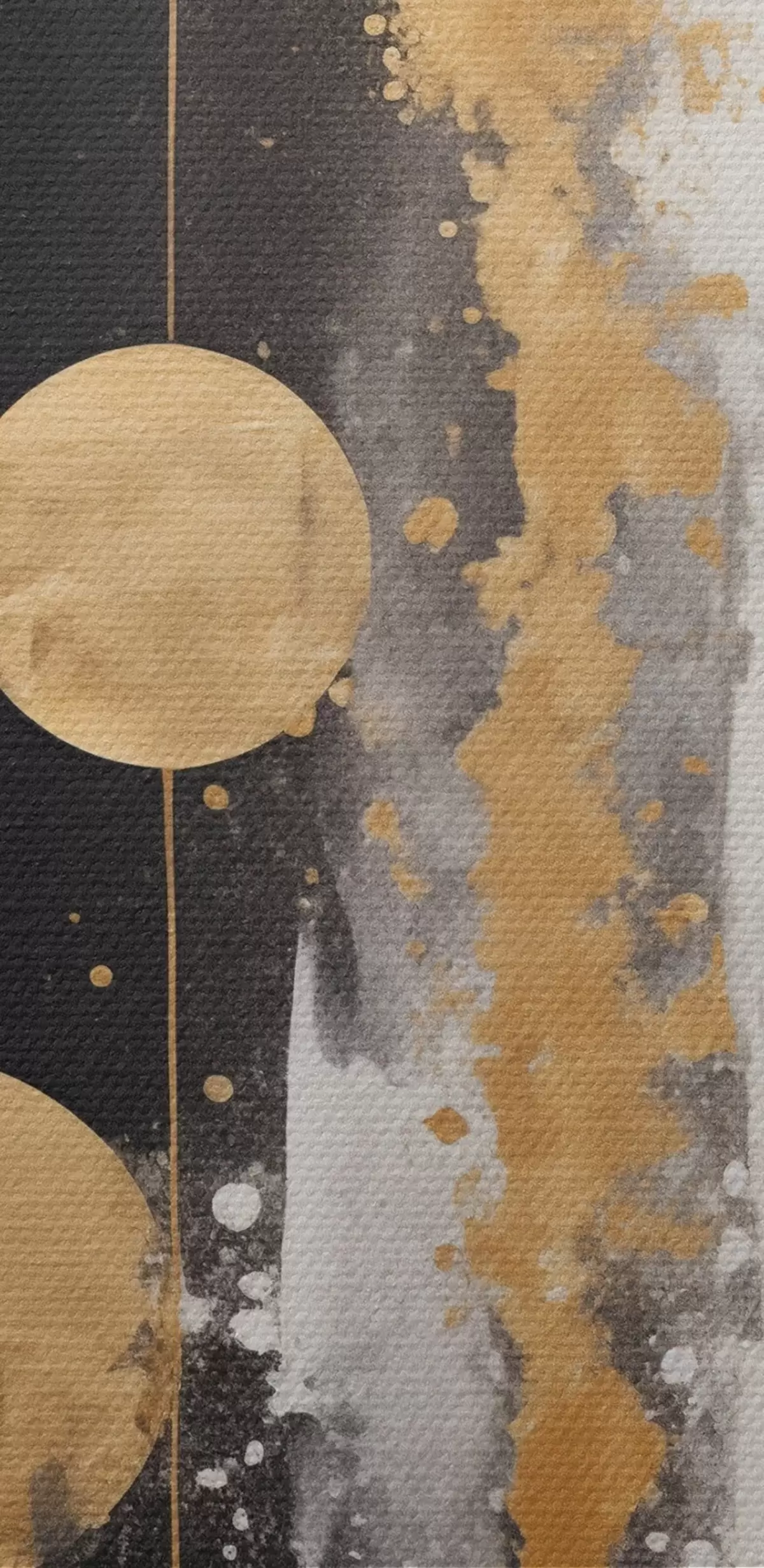 Wandbilder Abstrakte Kunst mit gelben Kreisen auf schwarzem und weißem Hintergrund mit weißen und gelben Flecken hängen Art. s43410