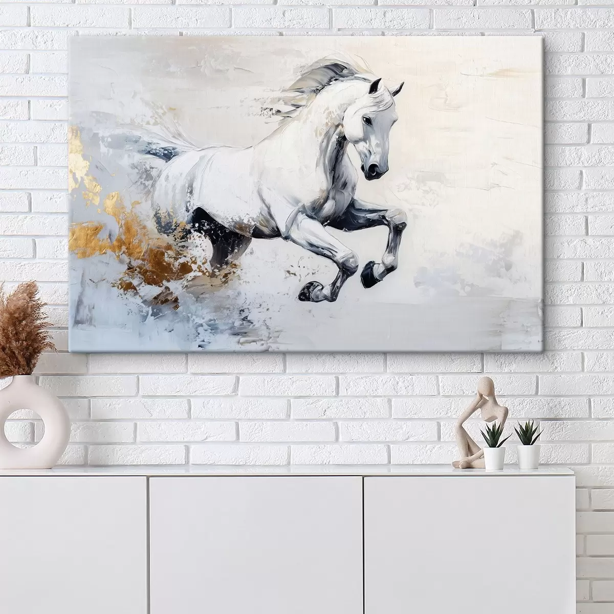 Wandbilder Laufendes weißes Pferd, Öl-Stilzeichnung, Tiere Art. s43498