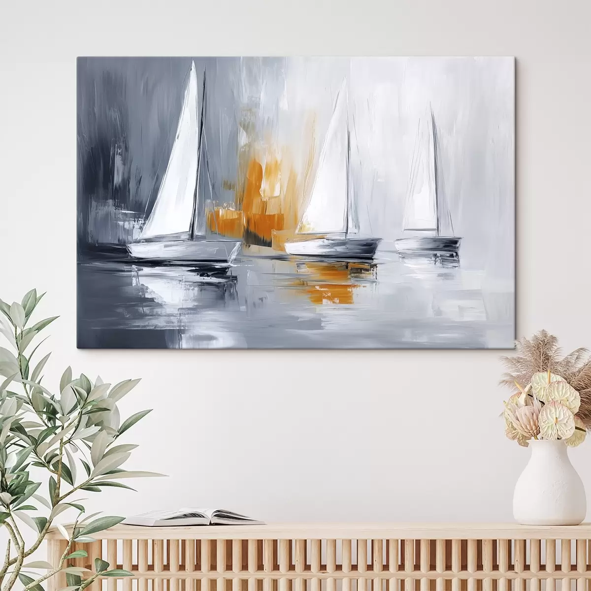 Wandbilder Segelboote, Abstraktion, Zeichnung im Acrylstil, grau und orange Art. s43499