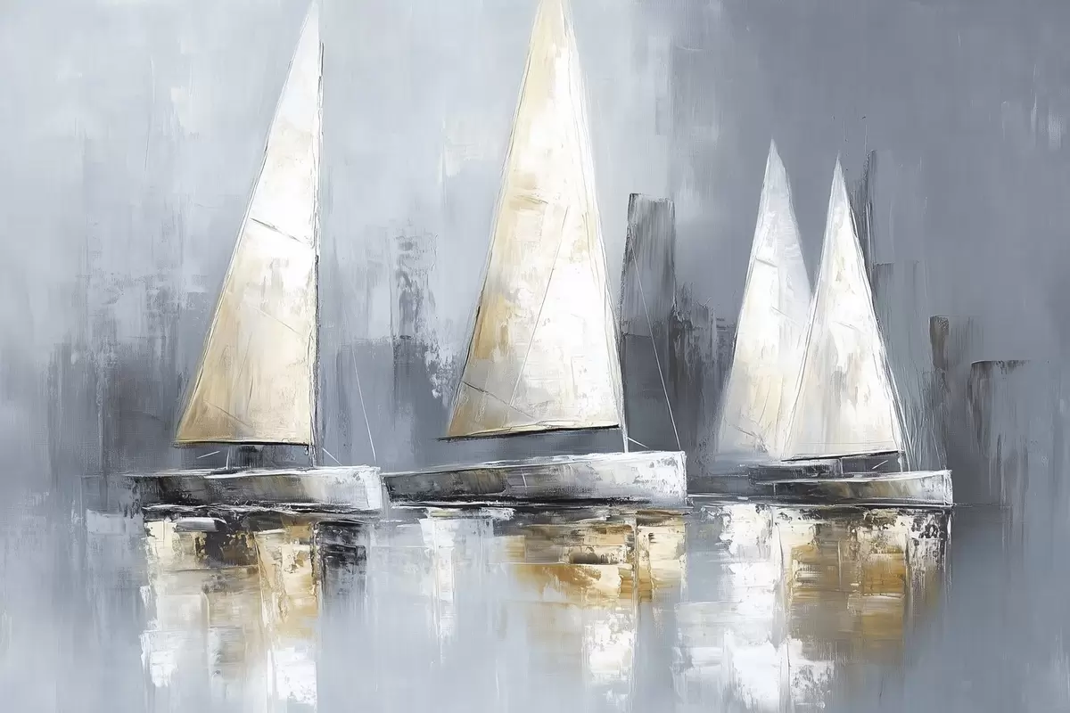 Wandbilder Segelboote mit Spiegelungen im Wasser, Ölzeichnung, graue Farben Art. s43506