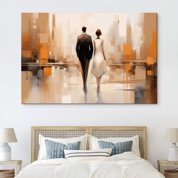 Wandbilder Abstraktion mit Stadtsilhouetten und zwei Figuren Art. s43516