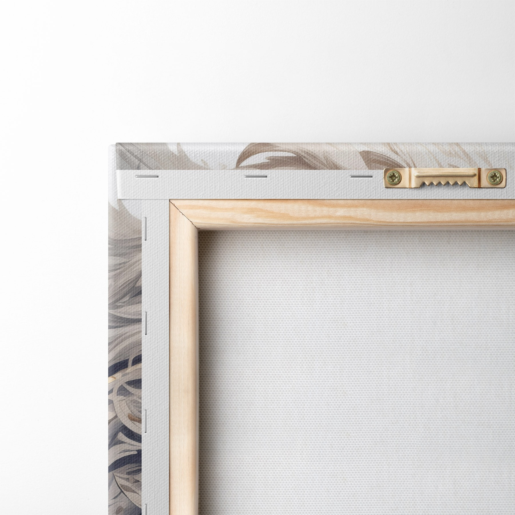 Um die Leinwand auf Keilrahmen zu spannen, ohne das Bild zu beschädigen, verwenden wir ein gespiegeltes Bild.