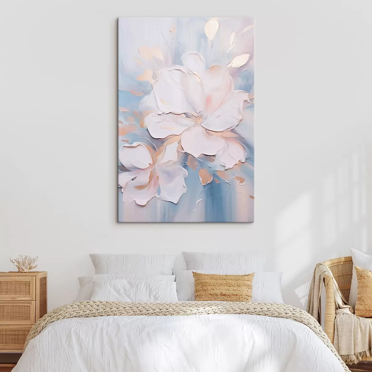 Drei Materialtypen stehen zur Verfügung: Economic Canvas - ein dichtes und haltbares Material für den Digitaldruck, identisch mit Malerleinwand, wasserfeste Oberfläche, realistische Wiedergabe von Details, mittelkörniges Material. Premium Canvas - die Textur ähnelt der einer Malerleinwand (verwobene kleine Fäden). Weiche, detaillierte Wiedergabe des Bildes auf einer matten Oberfläche. Eco-Premium - hochwertiges Gewebe aus 100% Baumwolle. Dank der natürlichen Baumwollfasern ist das Material langlebig und verschleißfest. Hervorragende Farbwiedergabe und Detailtreue.