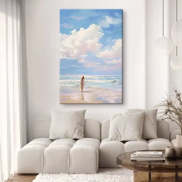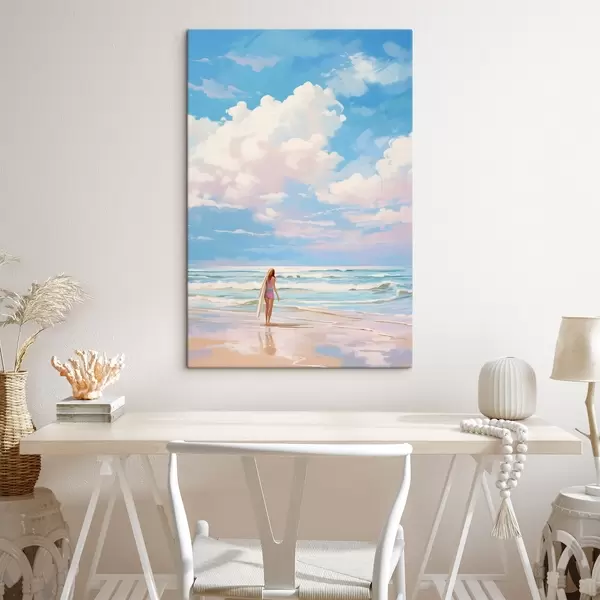 Wandbilder Mädchen surfen im Meer, Sommer, Wellen, Acryl-Stil s43882