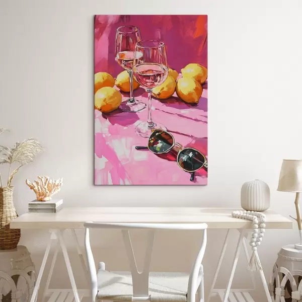 Wandbilder Abstraktion im Ölstil mit Getränkegläsern, Zitronen und Sonnenbrille Art. s43884