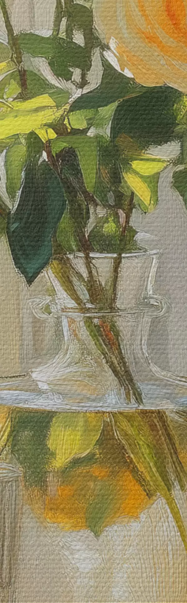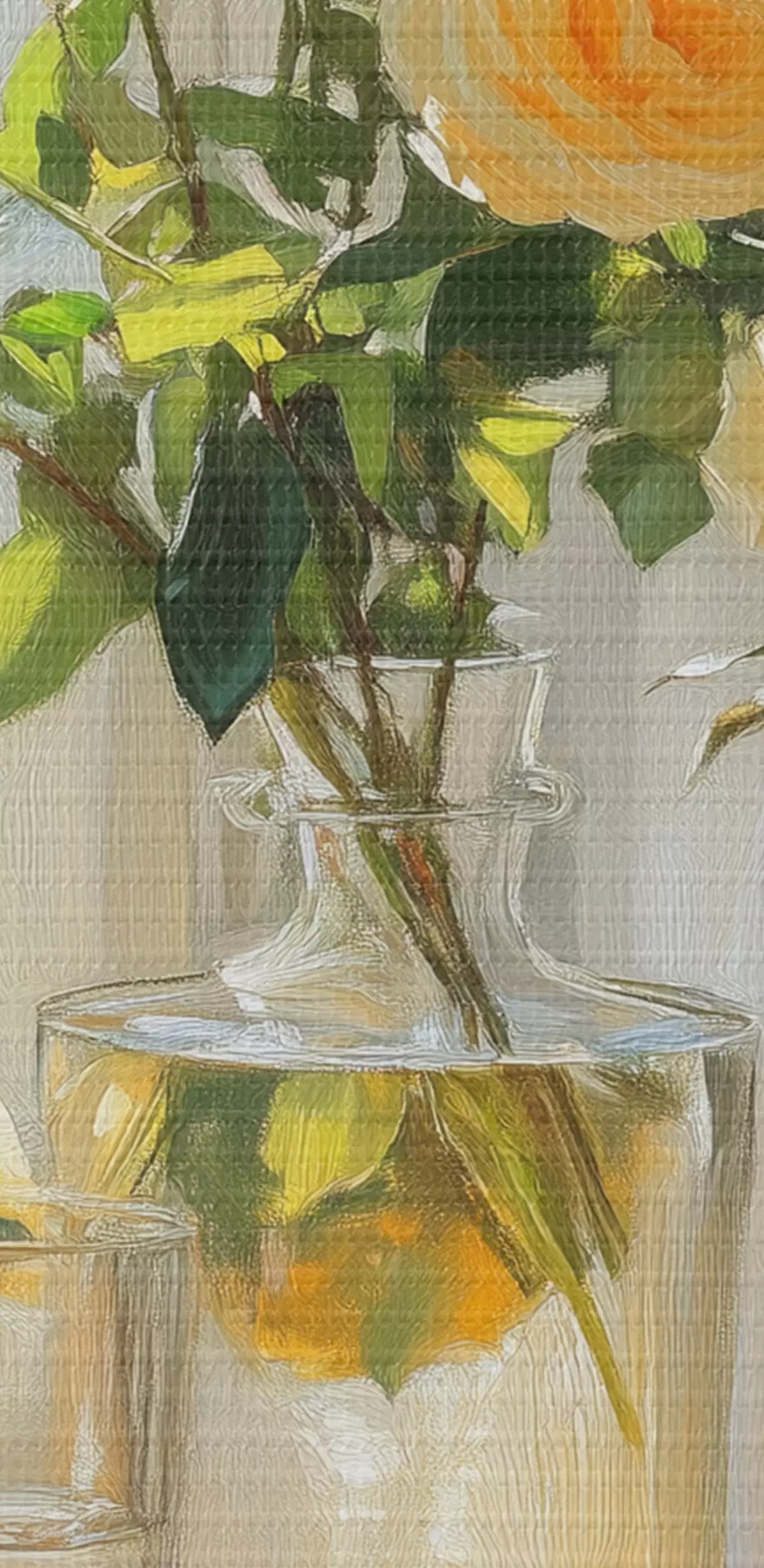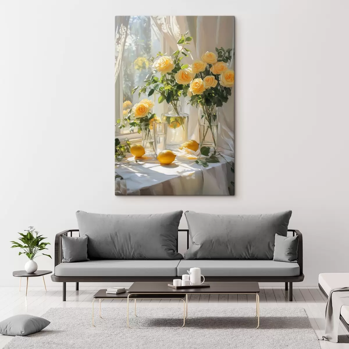 Wandbilder Rosen in Vasen, Ölgemälde, sanftes Sonnenlicht, Zitronen, Frühling s43887