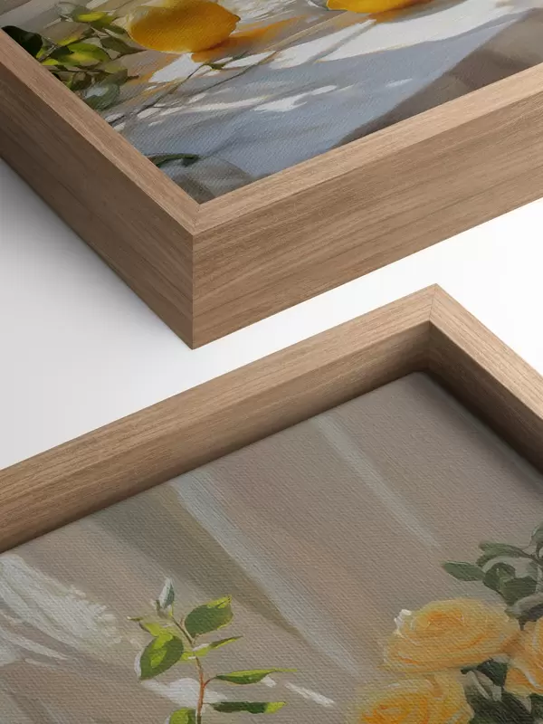 Wandbilder Rosen in Vasen, Ölgemälde, sanftes Sonnenlicht, Zitronen, Frühling Art. s43887