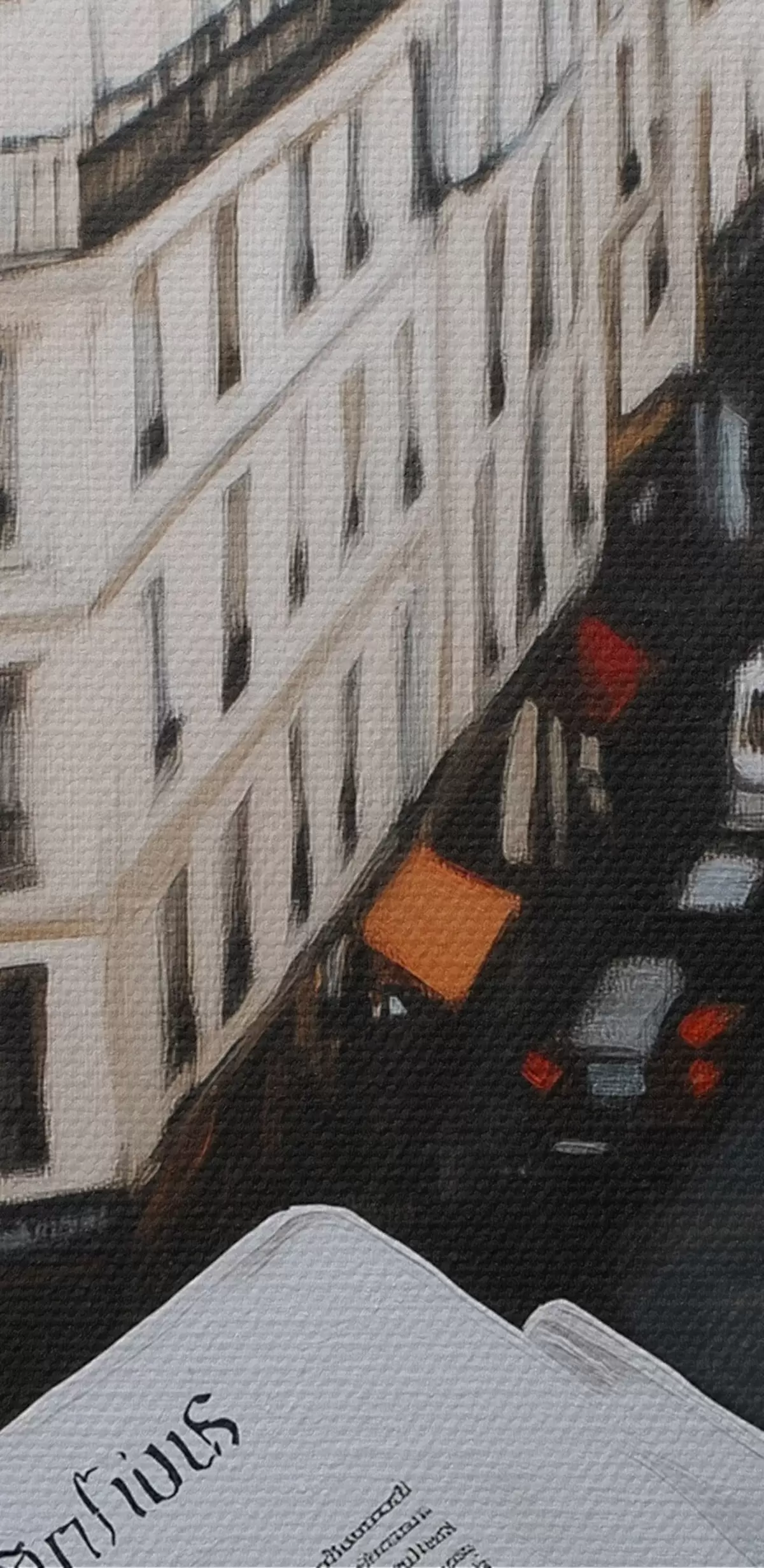 Wandbilder Morgenkaffee mit Croissants, Stadtstraße, architektonisch, Öl-Stil Art. s43891