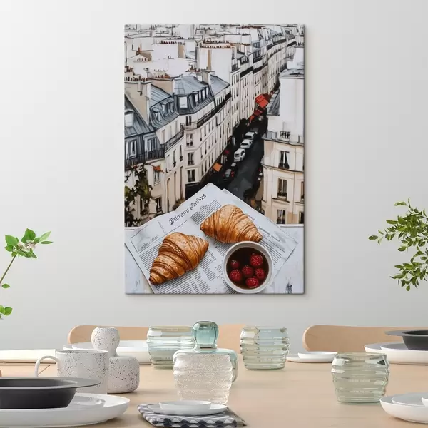 Wandbilder Morgenkaffee mit Croissants, Stadtstraße, architektonisch, Öl-Stil s43891