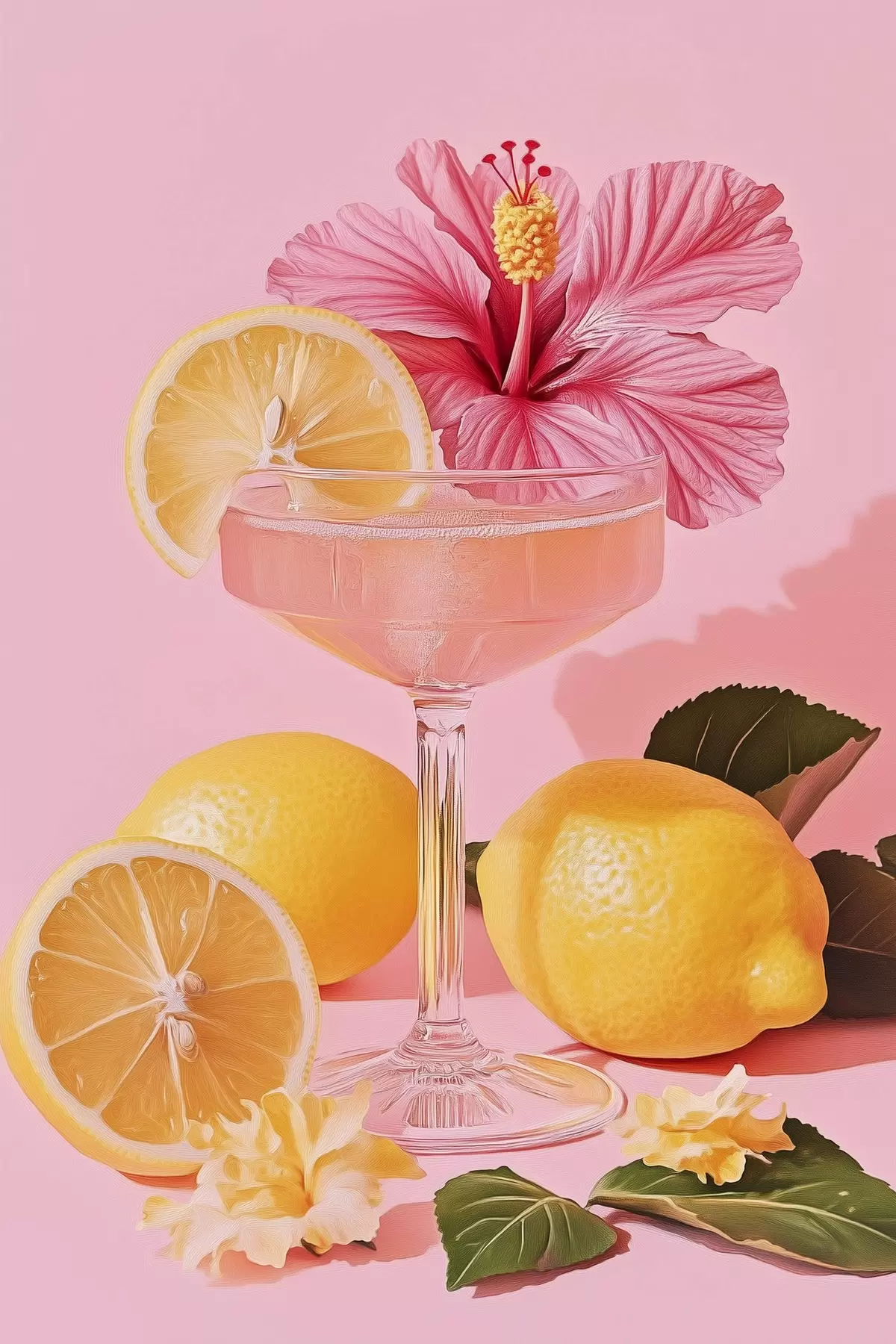 Wandbilder Rosa Cocktail mit Hibiskusblüte, Zitronen, Realismus s43893
