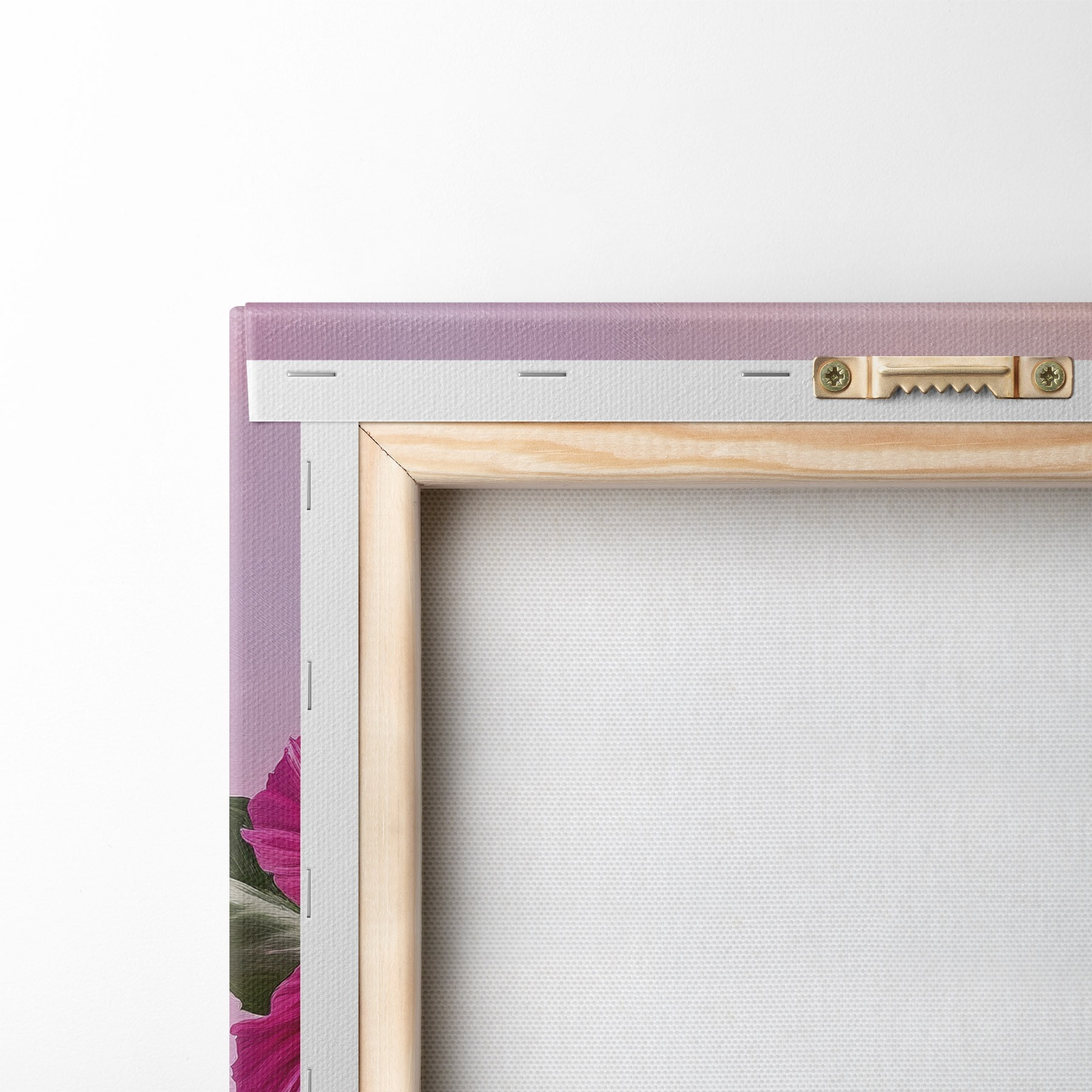 Um die Leinwand auf Keilrahmen zu spannen, ohne das Bild zu beschädigen, verwenden wir ein gespiegeltes Bild.