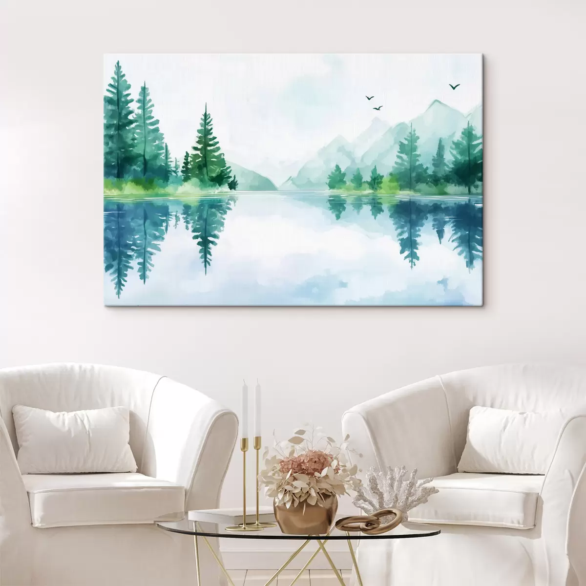 Wandbilder See in der Nähe des Berges in Aquarell-Stil s43922
