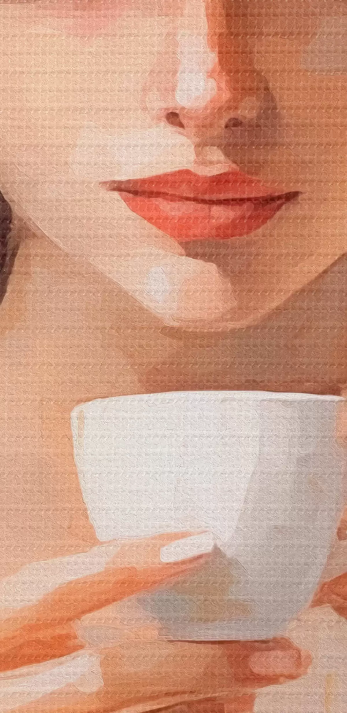 Drei Materialtypen stehen zur Verfügung: Economic Canvas - ein dichtes und haltbares Material für den Digitaldruck, identisch mit Malerleinwand, wasserfeste Oberfläche, realistische Wiedergabe von Details, mittelkörniges Material. Premium Canvas - die Textur ähnelt der einer Malerleinwand (verwobene kleine Fäden). Weiche, detaillierte Wiedergabe des Bildes auf einer matten Oberfläche. Eco-Premium - hochwertiges Gewebe aus 100% Baumwolle. Dank der natürlichen Baumwollfasern ist das Material langlebig und verschleißfest. Hervorragende Farbwiedergabe und Detailtreue.