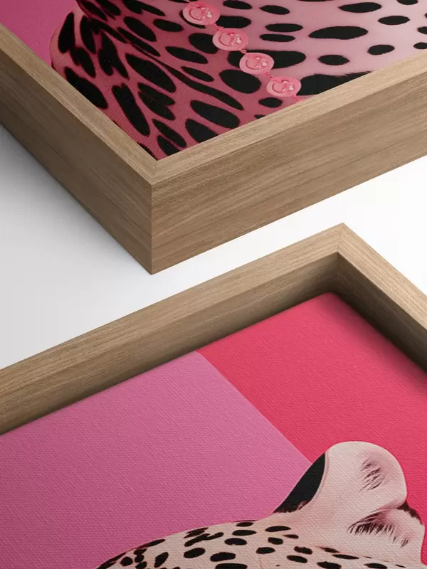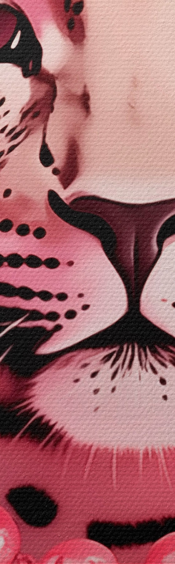 Wandbilder Porträt eines Leoparden mit rosa Halskette Art. s43976