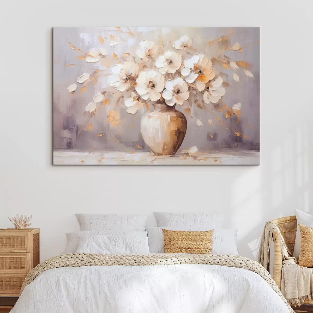 Drei Materialtypen stehen zur Verfügung: Economic Canvas - ein dichtes und haltbares Material für den Digitaldruck, identisch mit Malerleinwand, wasserfeste Oberfläche, realistische Wiedergabe von Details, mittelkörniges Material. Premium Canvas - die Textur ähnelt der einer Malerleinwand (verwobene kleine Fäden). Weiche, detaillierte Wiedergabe des Bildes auf einer matten Oberfläche. Eco-Premium - hochwertiges Gewebe aus 100% Baumwolle. Dank der natürlichen Baumwollfasern ist das Material langlebig und verschleißfest. Hervorragende Farbwiedergabe und Detailtreue.