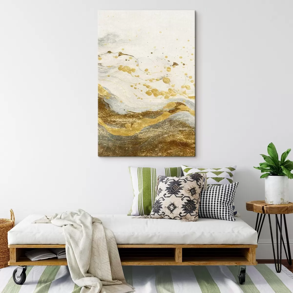 Drei Materialtypen stehen zur Verfügung: Economic Canvas - ein dichtes und haltbares Material für den Digitaldruck, identisch mit Malerleinwand, wasserfeste Oberfläche, realistische Wiedergabe von Details, mittelkörniges Material. Premium Canvas - die Textur ähnelt der einer Malerleinwand (verwobene kleine Fäden). Weiche, detaillierte Wiedergabe des Bildes auf einer matten Oberfläche. Eco-Premium - hochwertiges Gewebe aus 100% Baumwolle. Dank der natürlichen Baumwollfasern ist das Material langlebig und verschleißfest. Hervorragende Farbwiedergabe und Detailtreue.