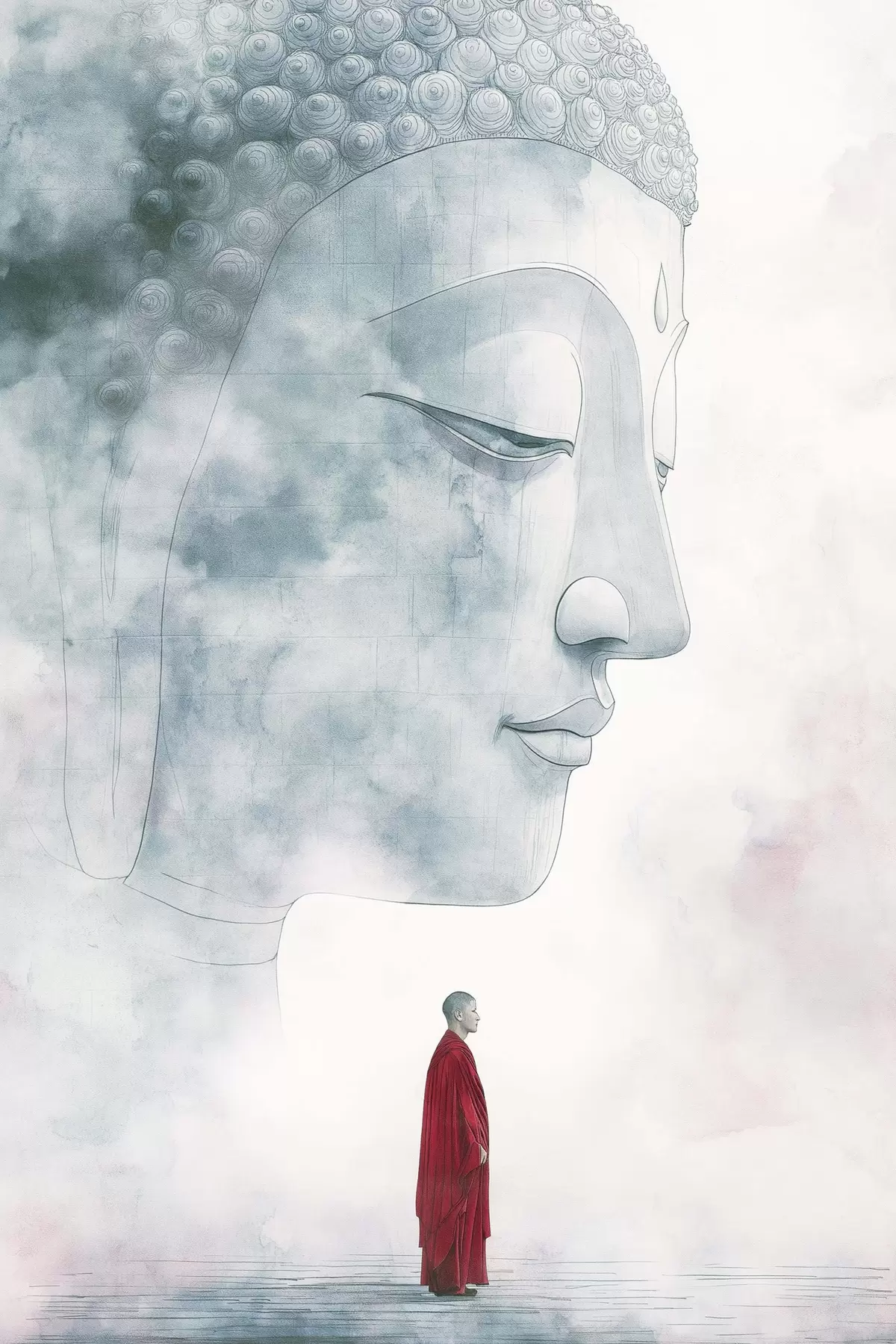 Wandbilder Buddhistischer Mönch in roter Robe, Buddha-Silhouette, Aquarellstil s44006