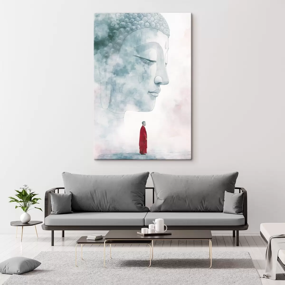 Wandbilder Buddhistischer Mönch in roter Robe, Buddha-Silhouette, Aquarellstil Art. s44006