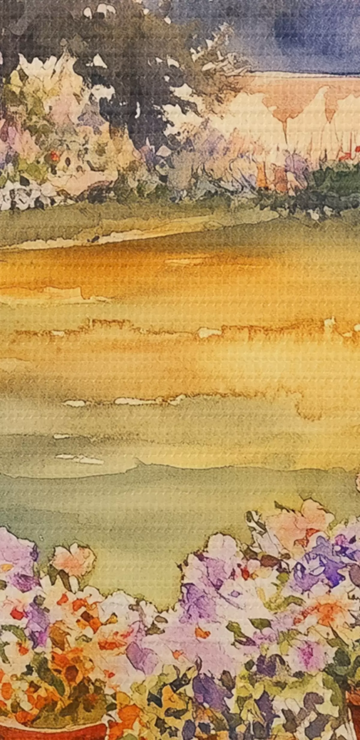 Wandbilder Blumen im Dorfgarten, Sonnenuntergang Farben, Aquarell-Stil Art. s44019