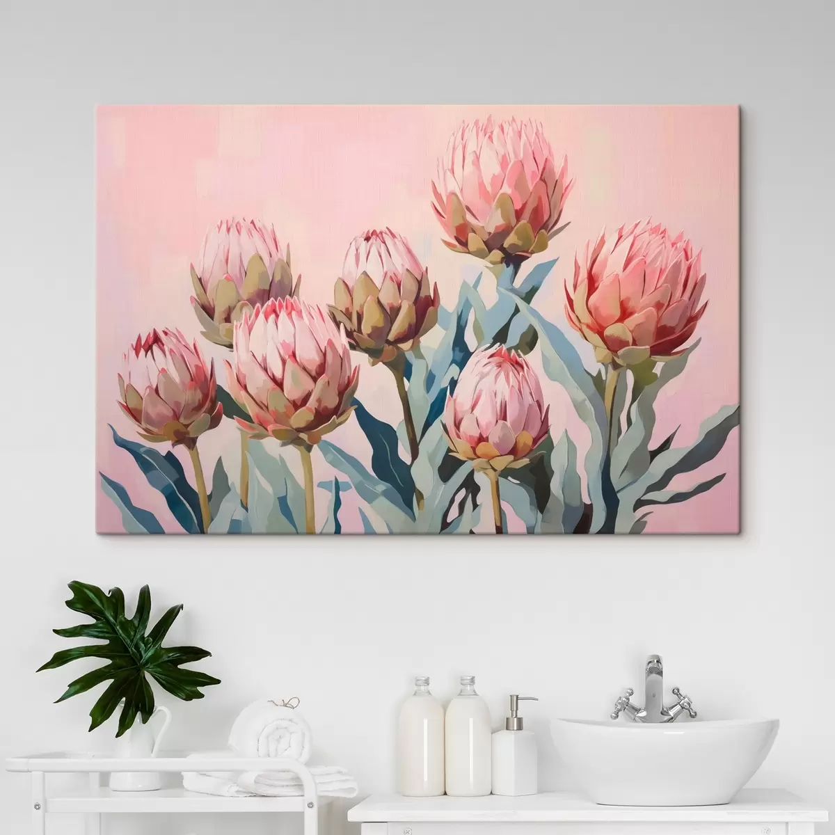 Drei Materialtypen stehen zur Verfügung: Economic Canvas - ein dichtes und haltbares Material für den Digitaldruck, identisch mit Malerleinwand, wasserfeste Oberfläche, realistische Wiedergabe von Details, mittelkörniges Material. Premium Canvas - die Textur ähnelt der einer Malerleinwand (verwobene kleine Fäden). Weiche, detaillierte Wiedergabe des Bildes auf einer matten Oberfläche. Eco-Premium - hochwertiges Gewebe aus 100% Baumwolle. Dank der natürlichen Baumwollfasern ist das Material langlebig und verschleißfest. Hervorragende Farbwiedergabe und Detailtreue.