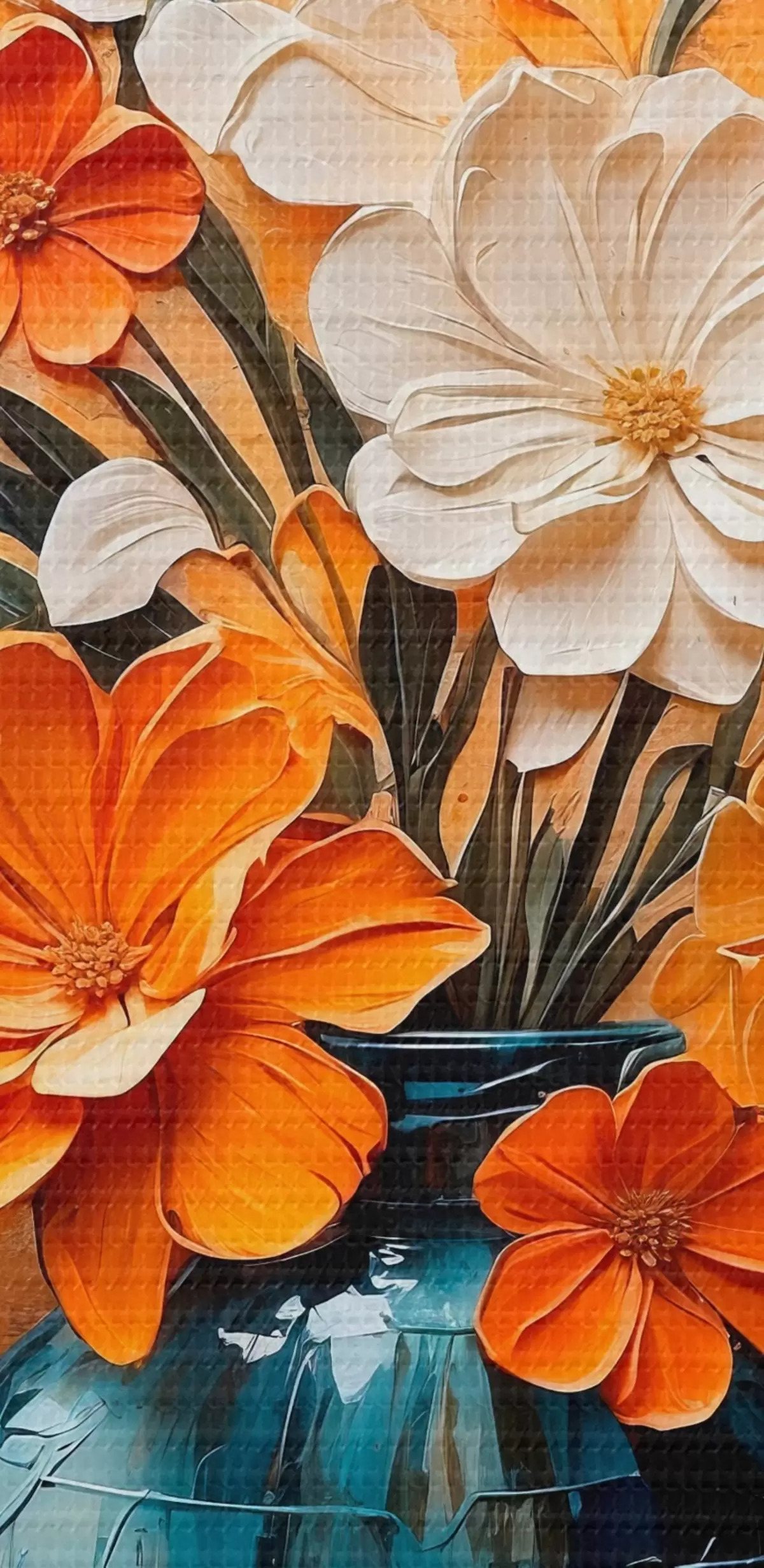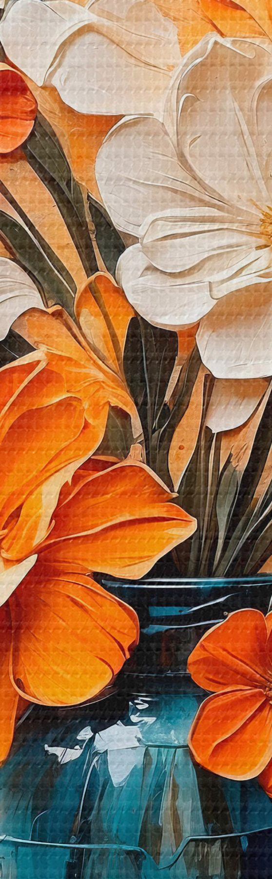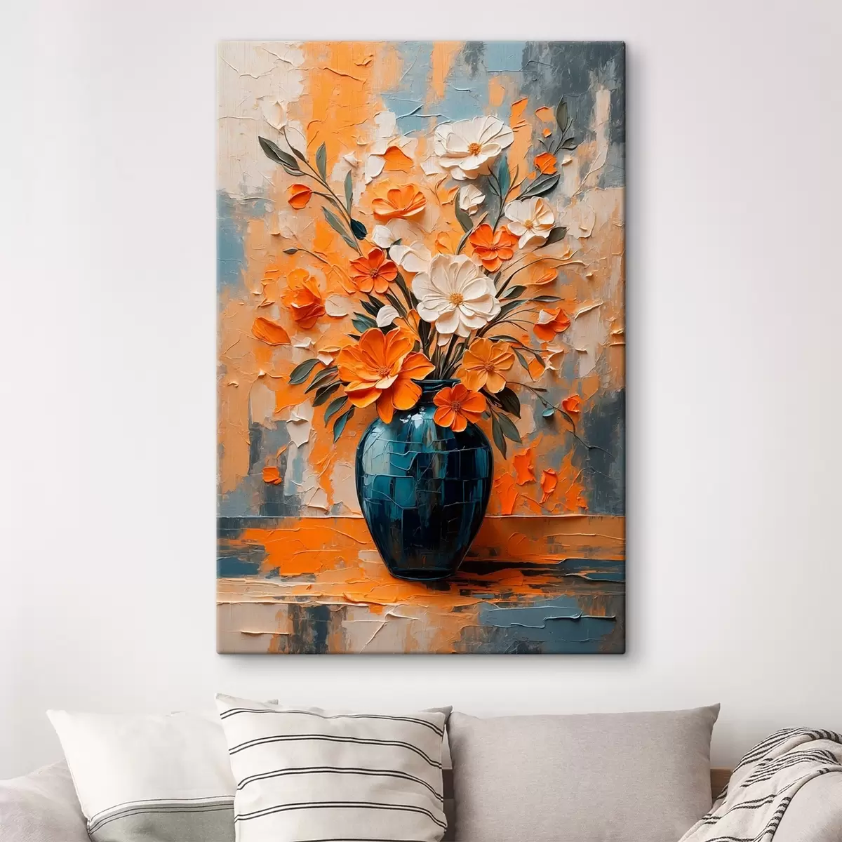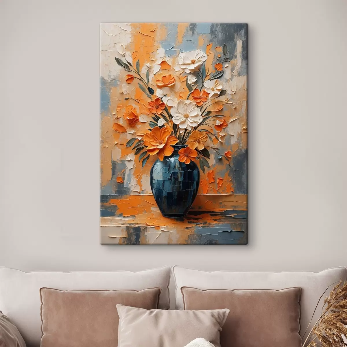 Wandbilder Weiße und orangefarbene Blumen in einer Vase im Stil der Ölmalerei Art. s44059