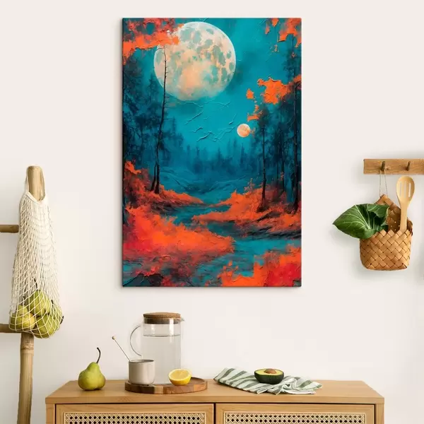 Wandbilder Schwarzer Wald in schwarzem Mond in Ölgemälde Stil Art. s44063