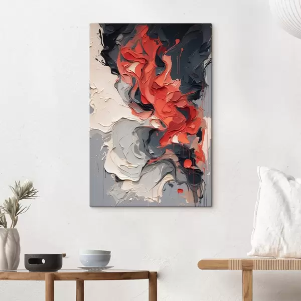 Wandbilder Abstraktes Ölgemälde in roten, schwarzen und grauen Farben Art. s44079