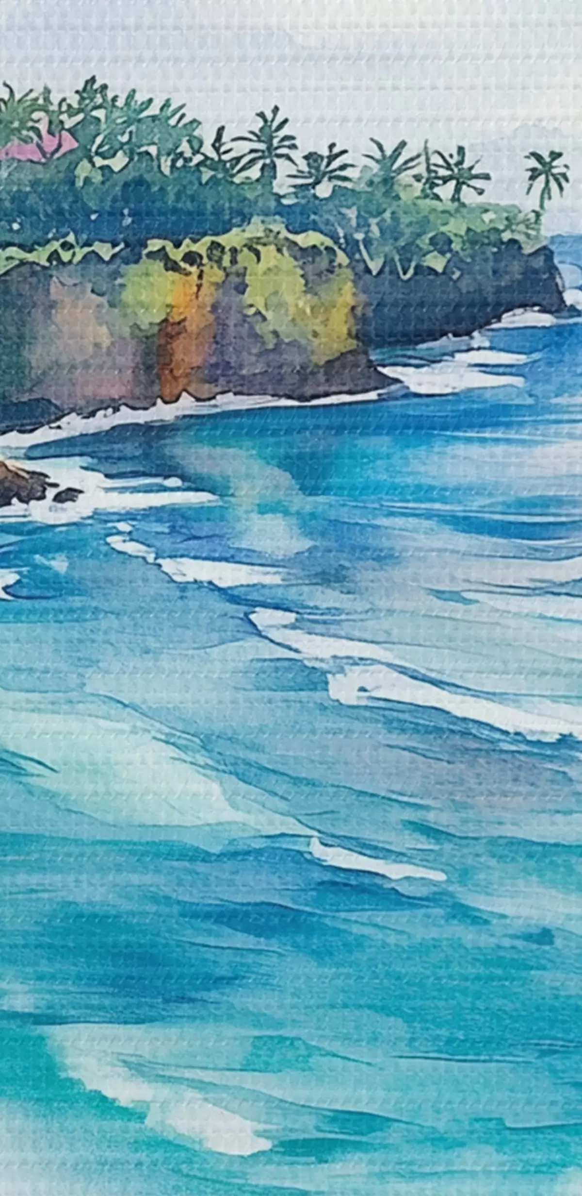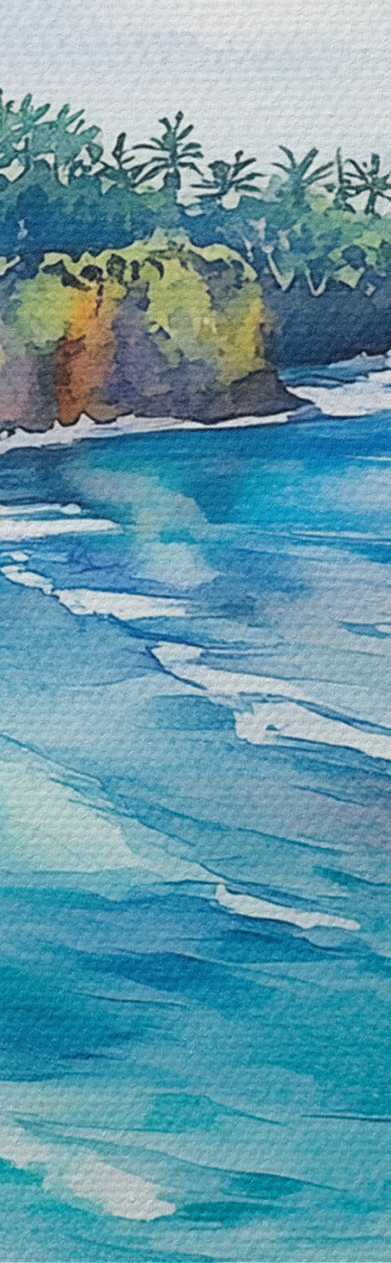 Wandbilder Tropischer Meeresstrand, Palmen, Blumen, Aquarellstil Art. s44145