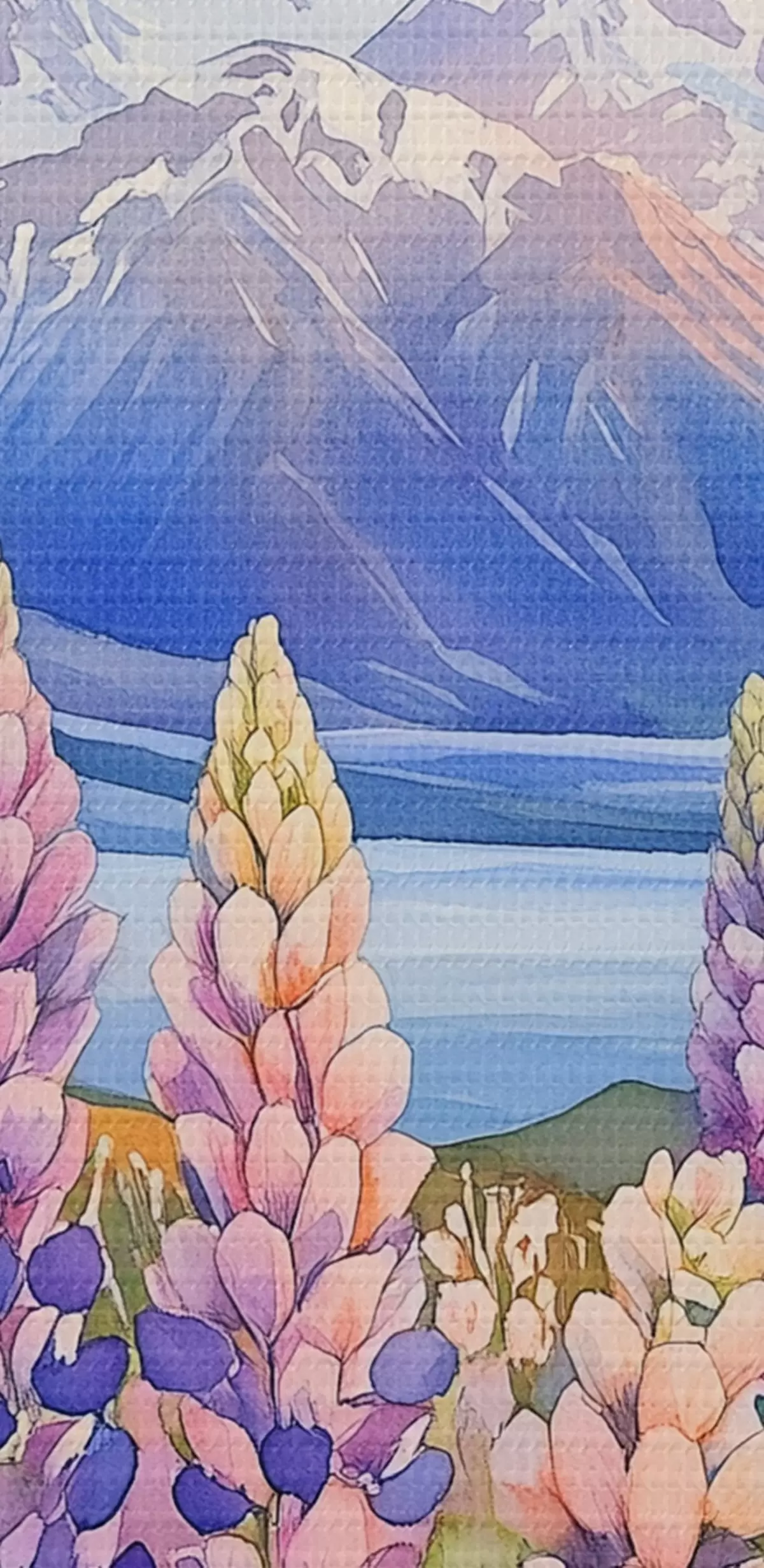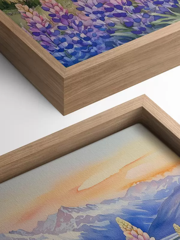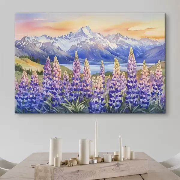 Wandbilder Lupinenblüten, Wiese, Berge, Aquarellstil, Sonnenuntergangshimmel Art. s44146