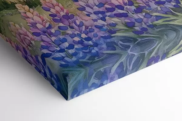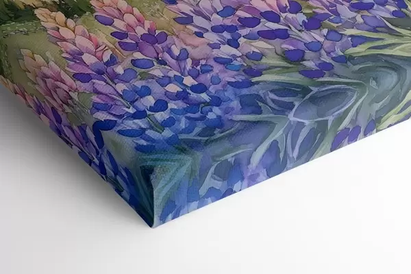 Wandbilder Lupinenblüten, Wiese, Berge, Aquarellstil, Sonnenuntergangshimmel s44146