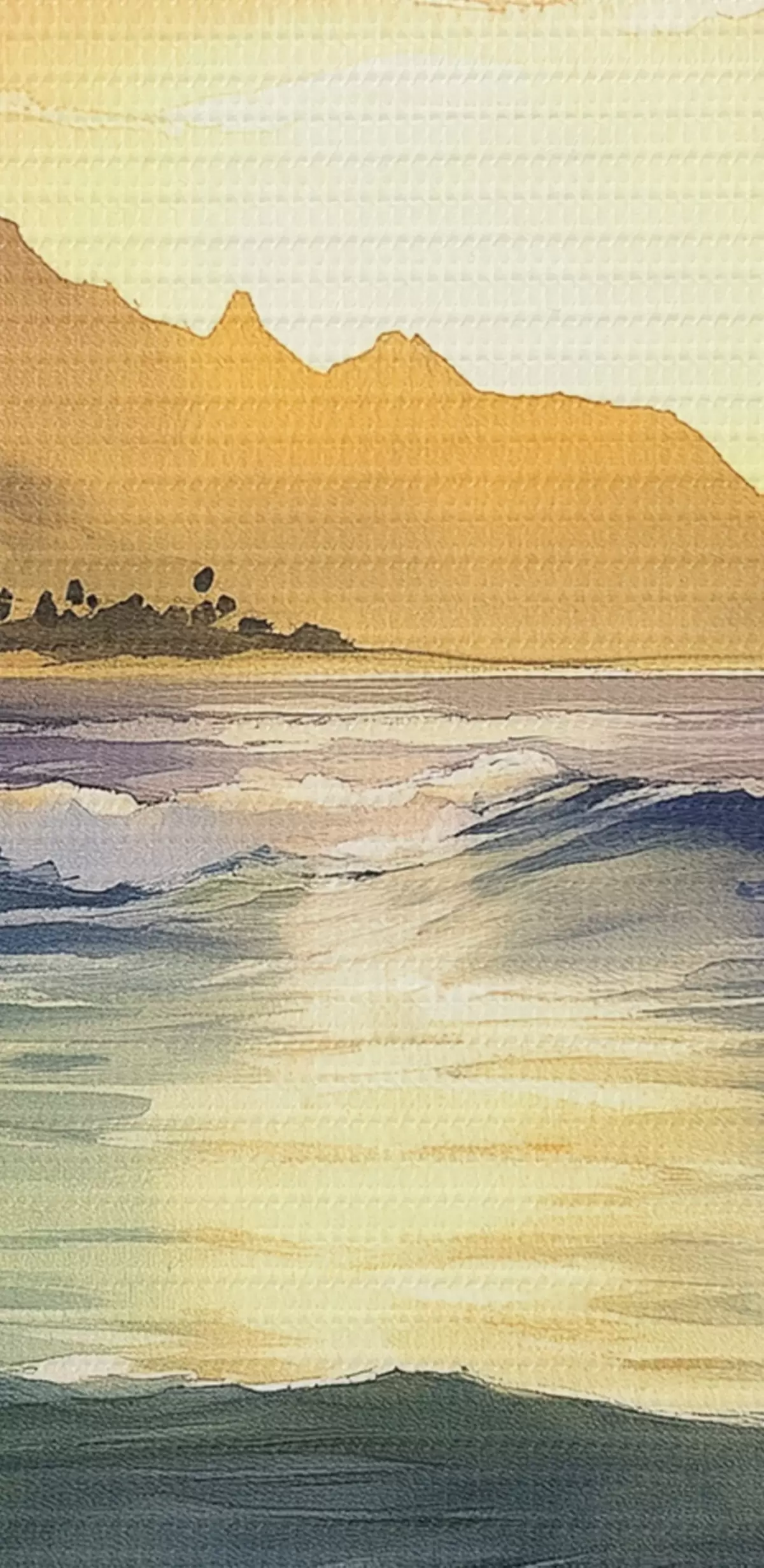 Wandbilder Meereswellen, Sonnenuntergang, Aquarellstil, Natur Art. s44147