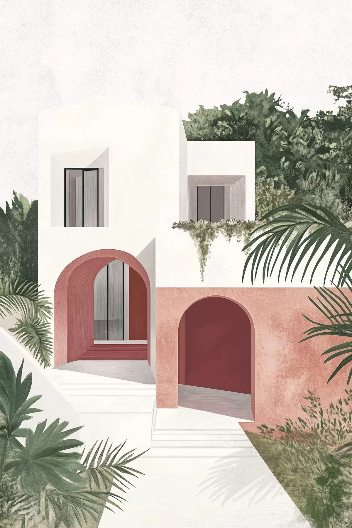 Wandbilder Villa mit tropischem Garten, mediterran, Acryl-Stil s44151