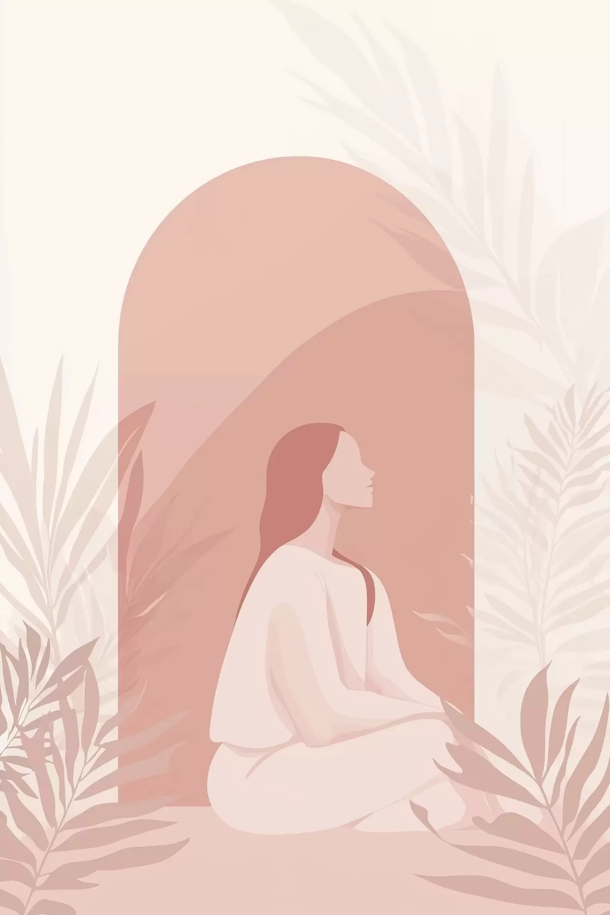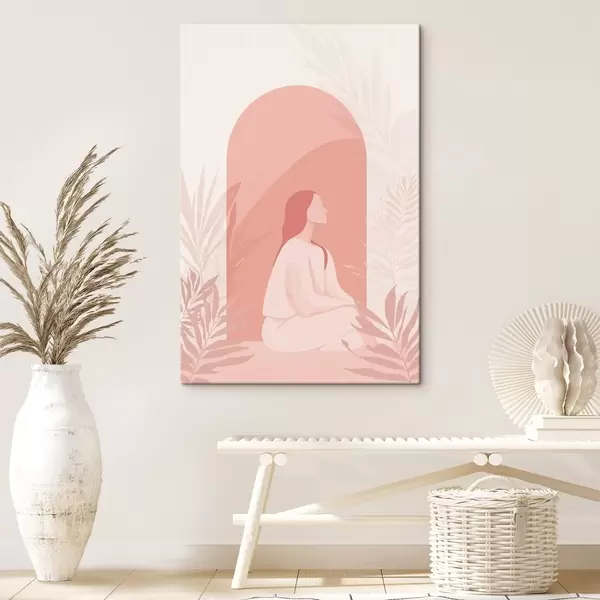 Wandbilder Frau in Meditation, flacher Stil, tropische Pflanzen, rosa Farben Art. s44154