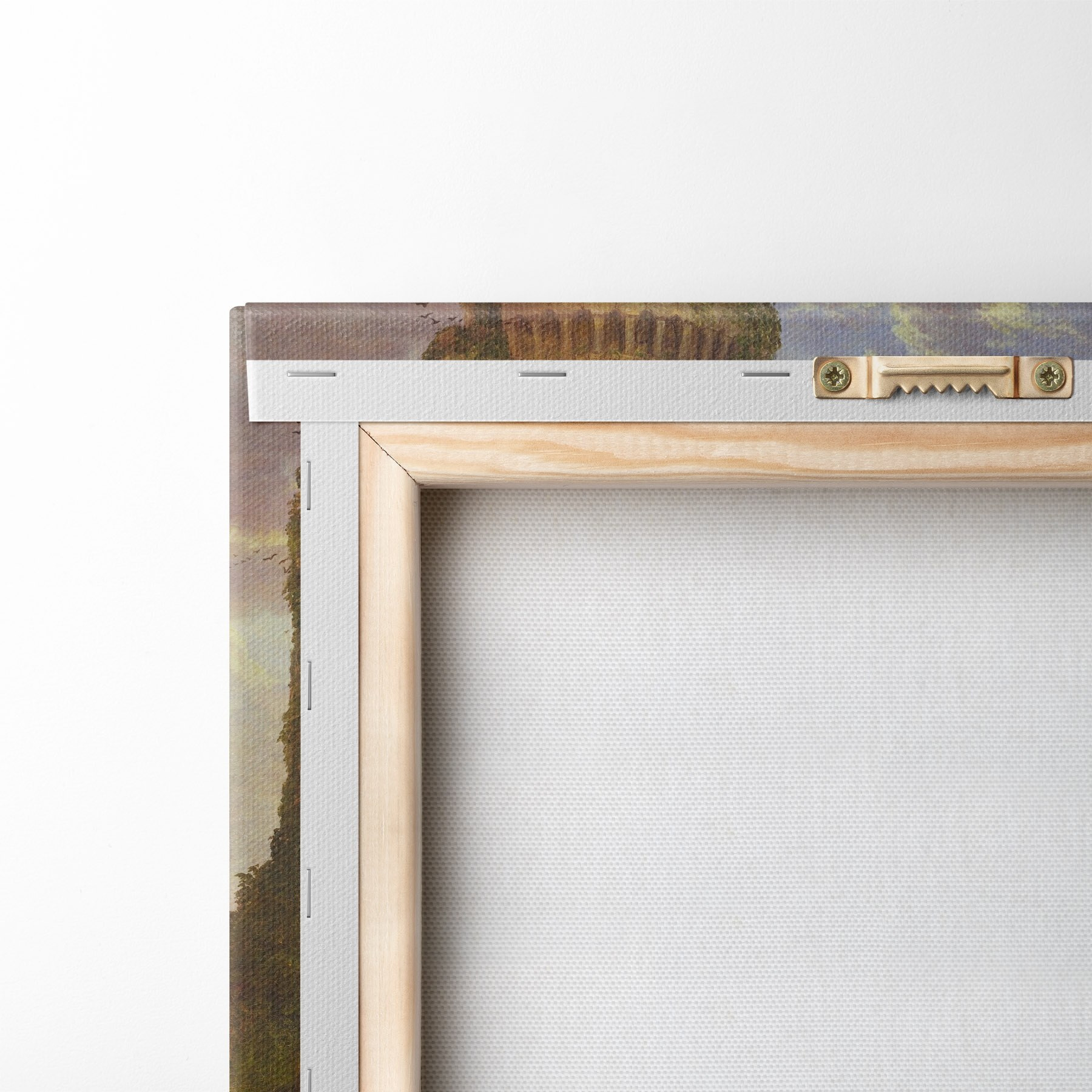 Um die Leinwand auf Keilrahmen zu spannen, ohne das Bild zu beschädigen, verwenden wir ein gespiegeltes Bild.