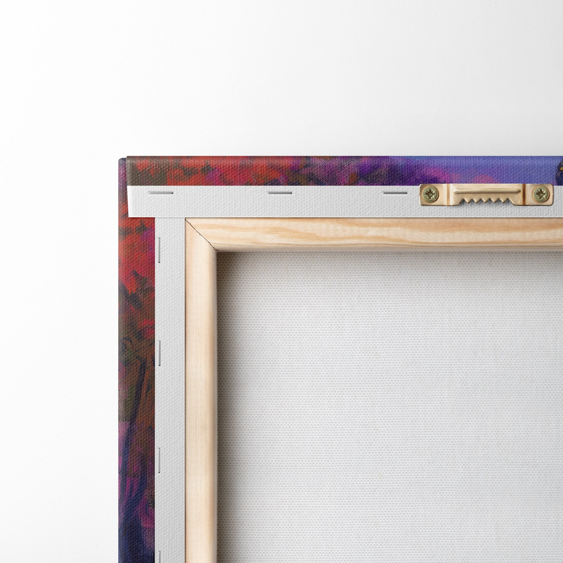 Um die Leinwand auf Keilrahmen zu spannen, ohne das Bild zu beschädigen, verwenden wir ein gespiegeltes Bild.