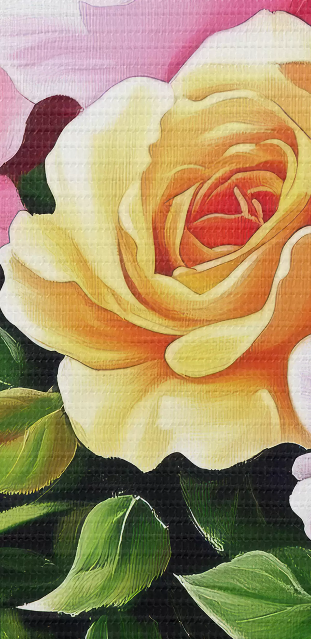 Das feine Fadengeflecht auf dieser Leinwand ähnelt der Oberfläche von professionellen Künstlerleinwänden.