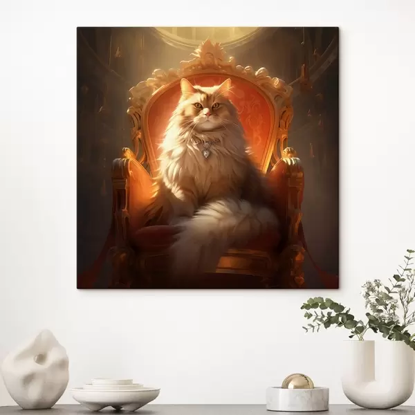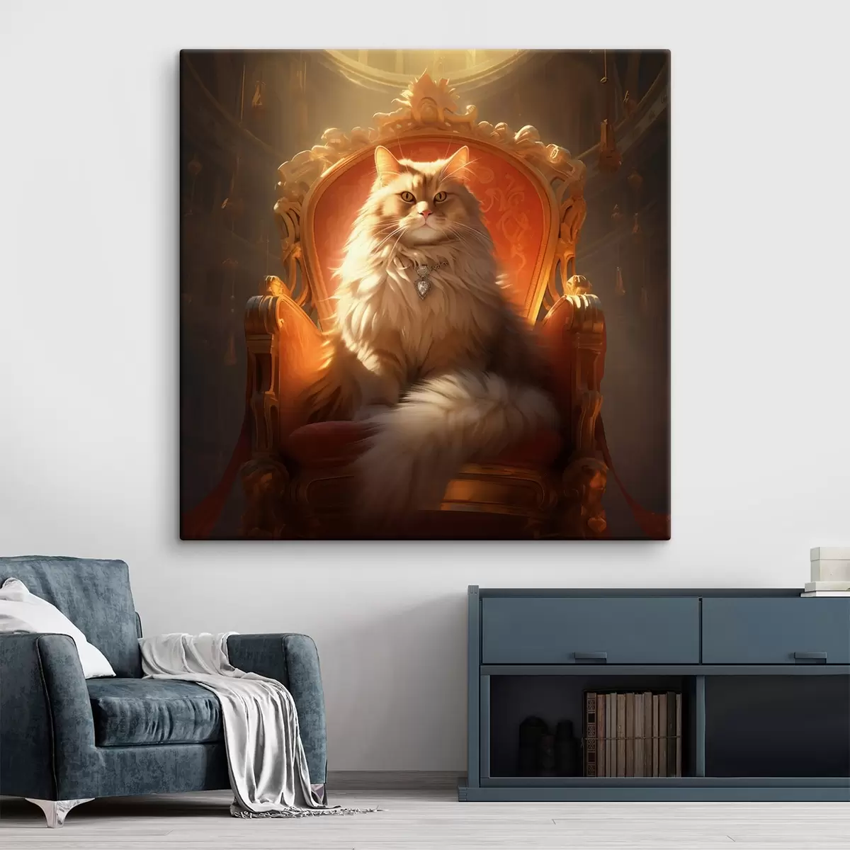 Wandbilder Regal Katze mit bernsteinfarbenen Augen auf einem Thron in den Strahlen der Herrlichkeit im Barock-Stil Art. s44250
