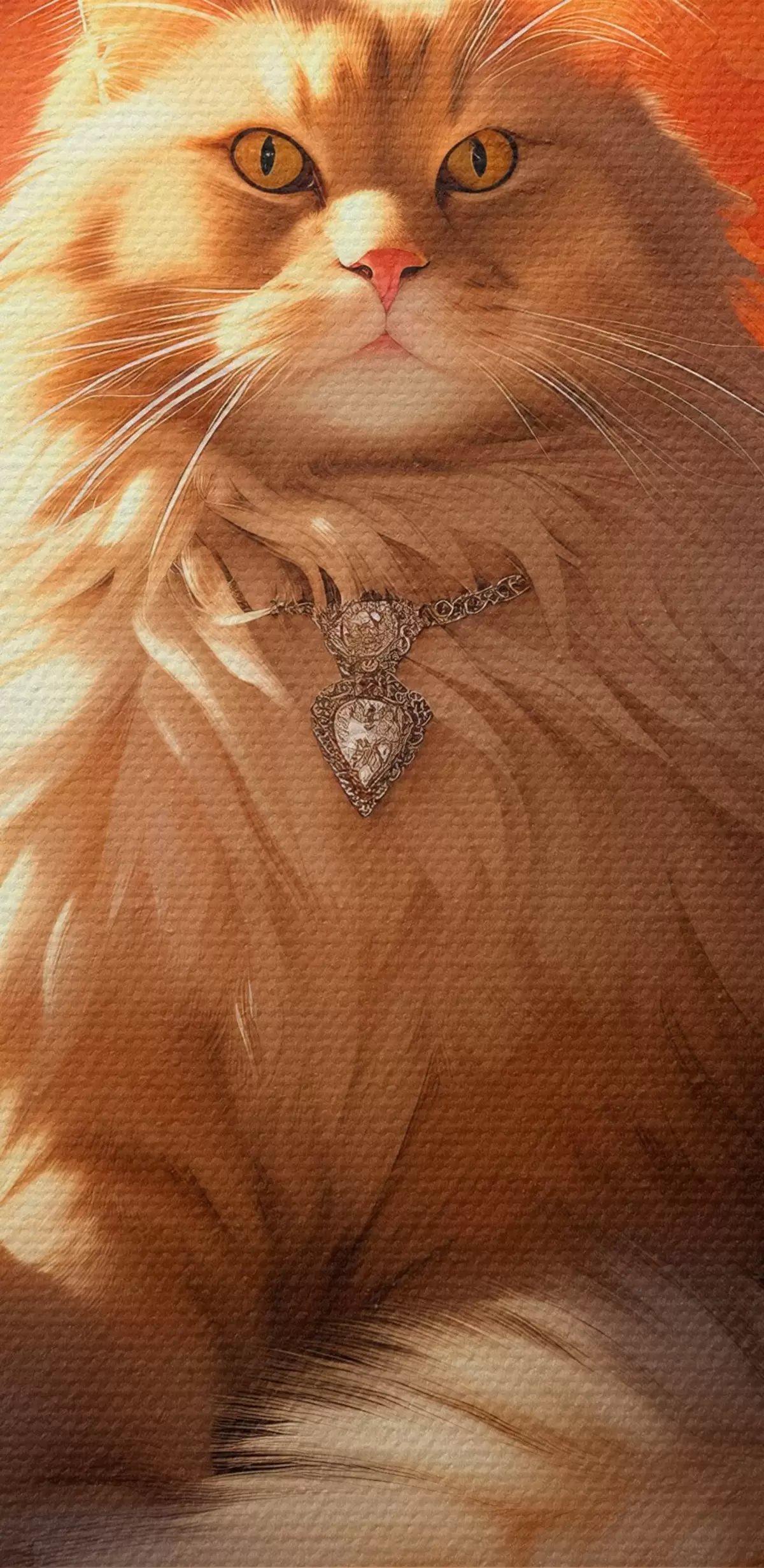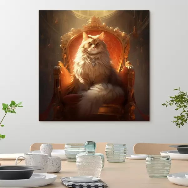 Wandbilder Regal Katze mit bernsteinfarbenen Augen auf einem Thron in den Strahlen der Herrlichkeit im Barock-Stil s44250