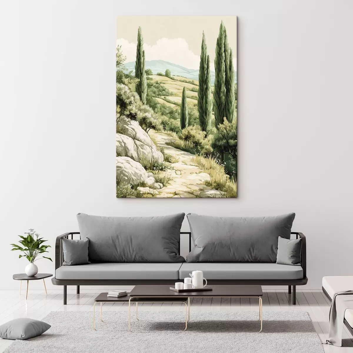 Wandbilder Sommerlandschaften mit Zypressen und grünen Hügeln, rustikaler Stil Art. s44308