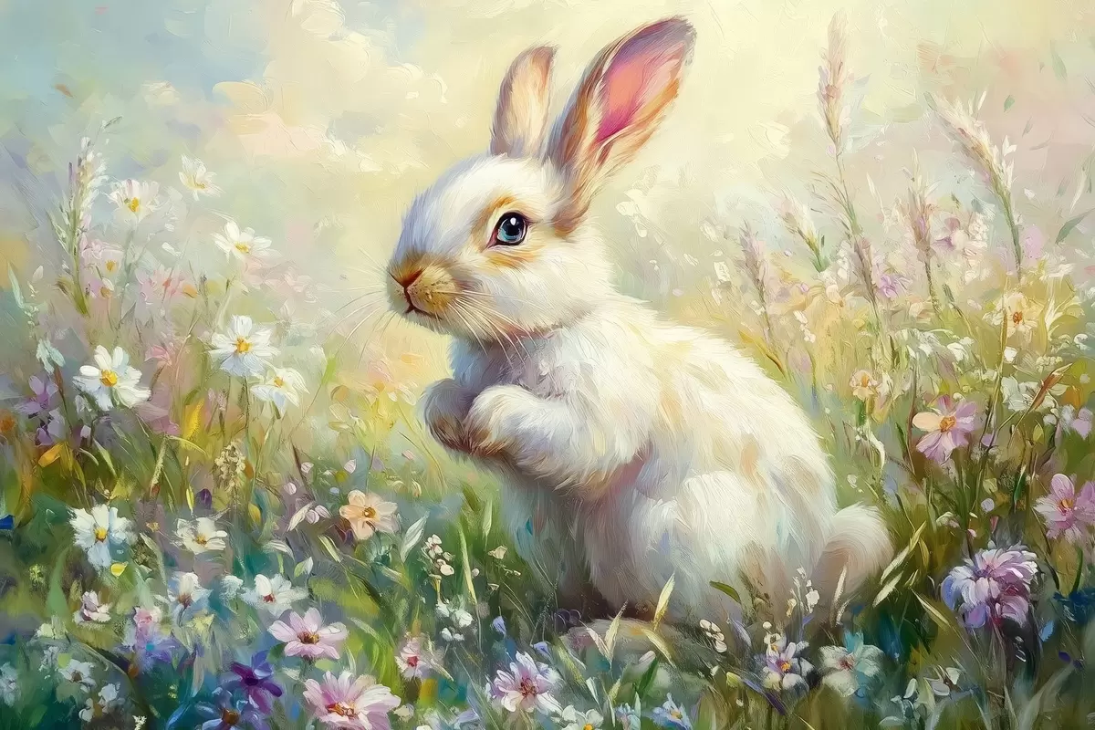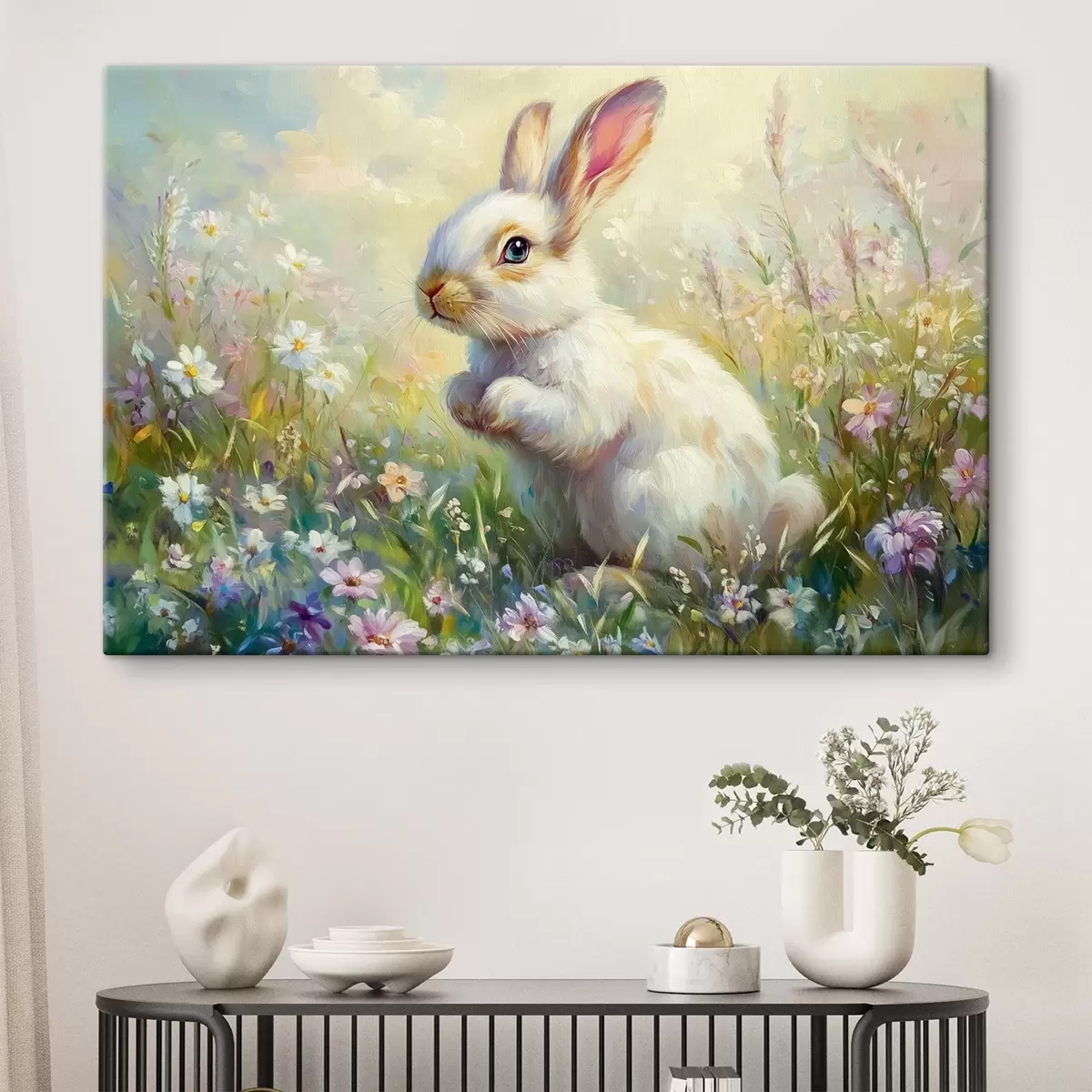 Wandbilder Weißer Hase inmitten von Blumen Art. s44326