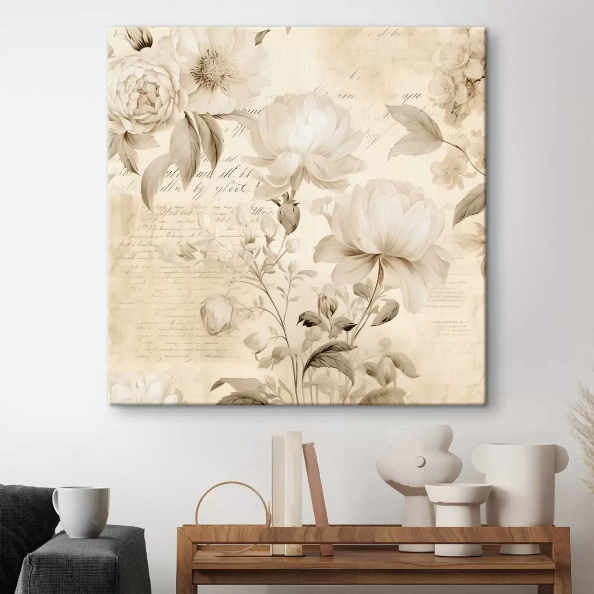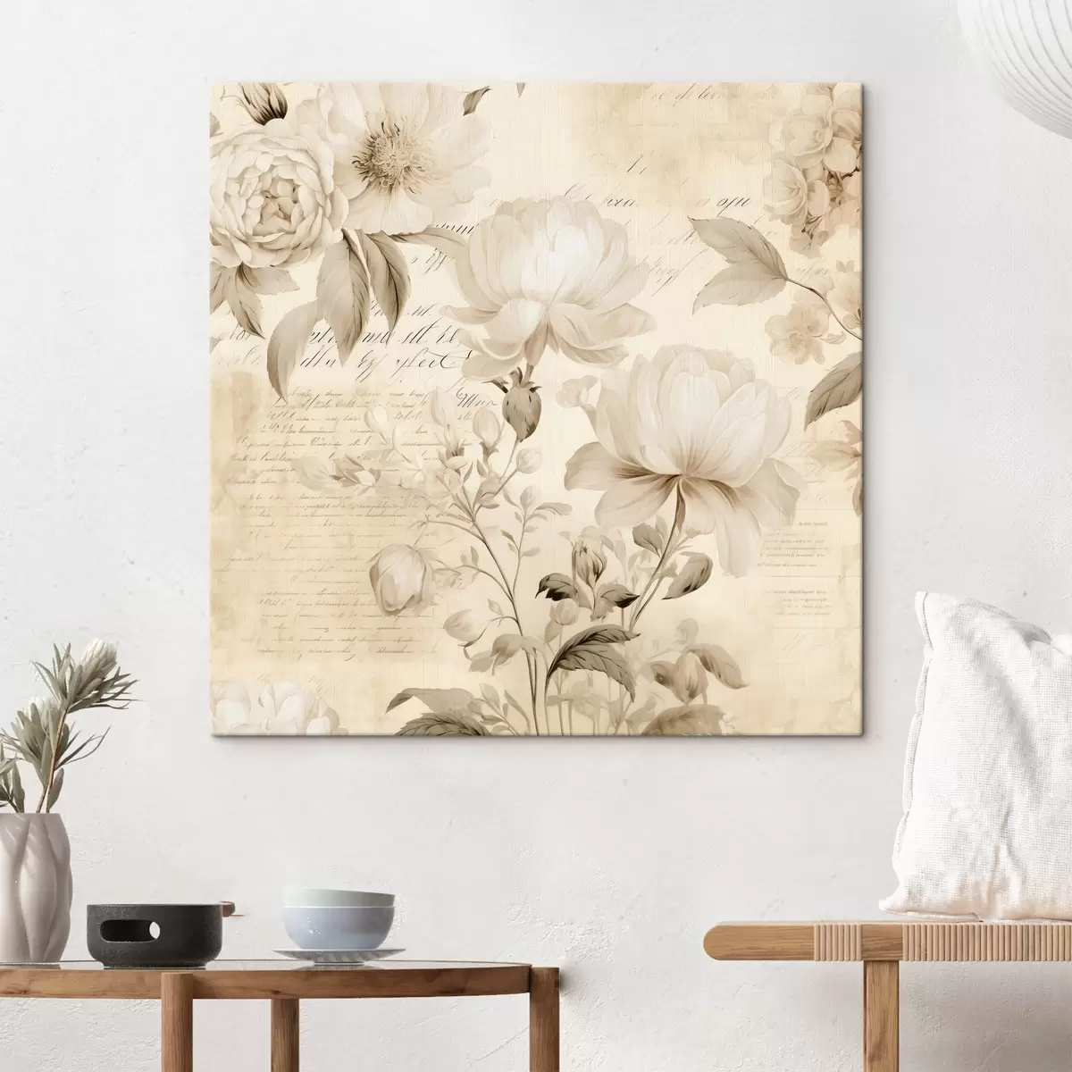 Wandbilder Vintage Zusammensetzung der cremig weißen Blumen Art. s44332