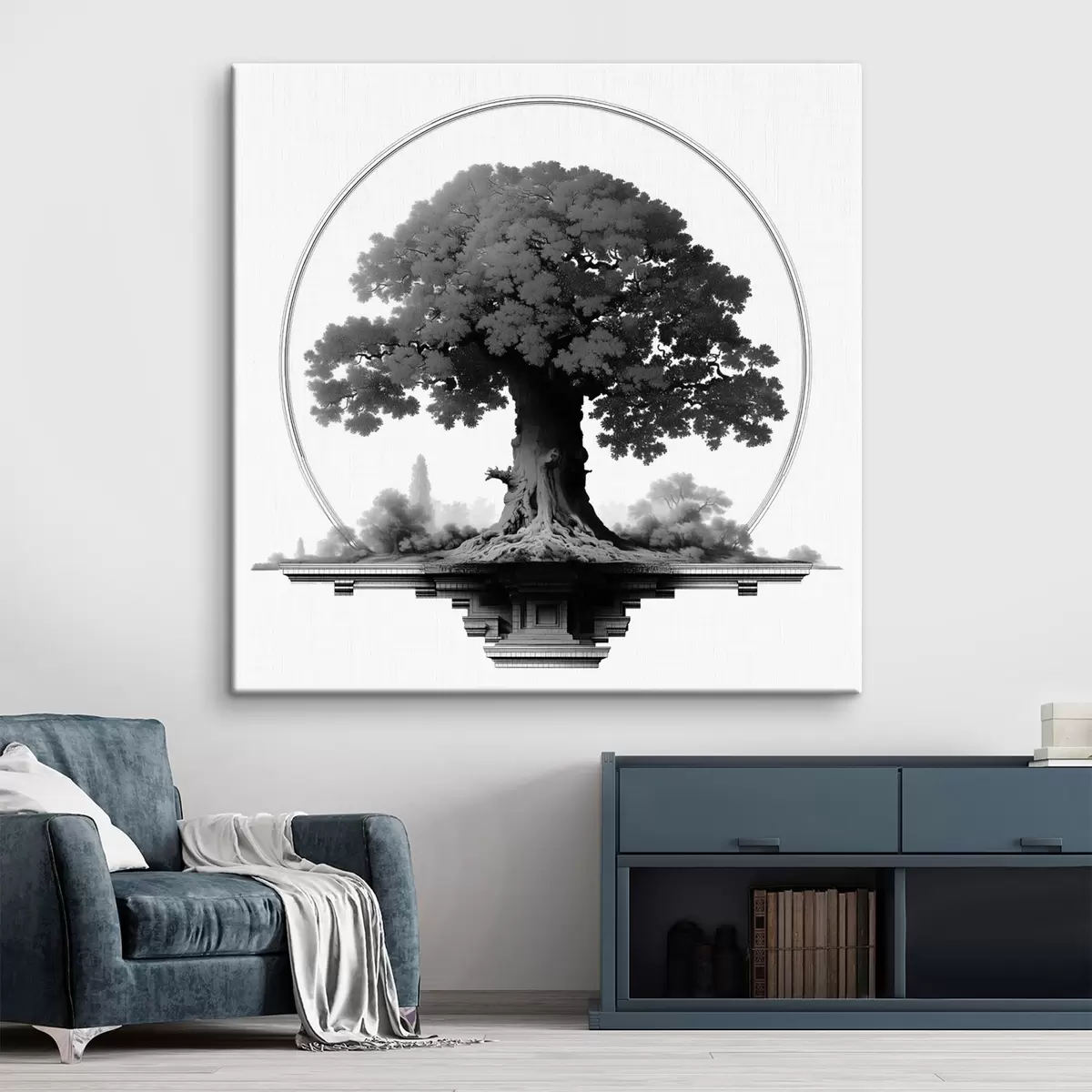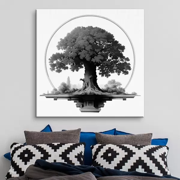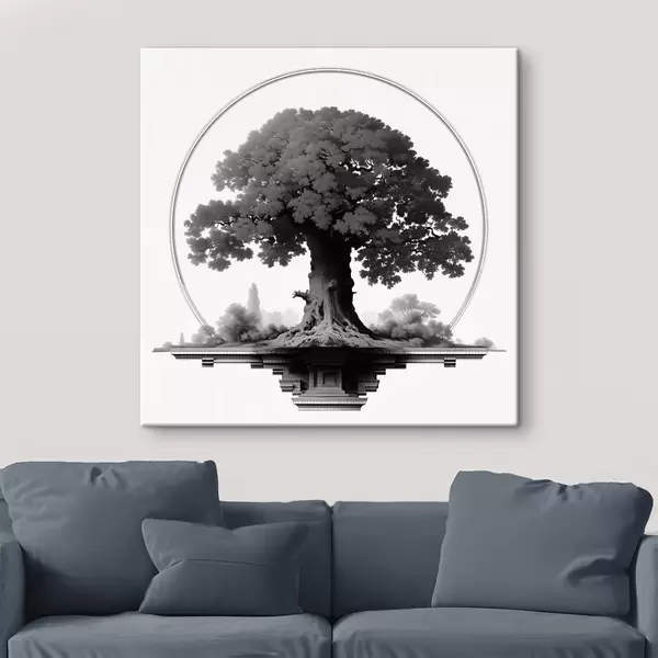 Wandbilder Monochromer Baum mit mächtigem Stamm und weit ausladender Krone Art. s44346