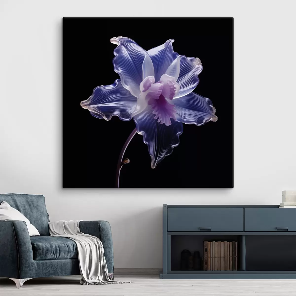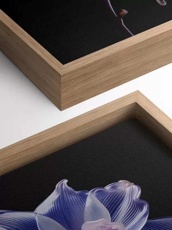 Wandbilder Transluzente Blütenblätter mit Adern auf schwarzem Hintergrund Art. s44347