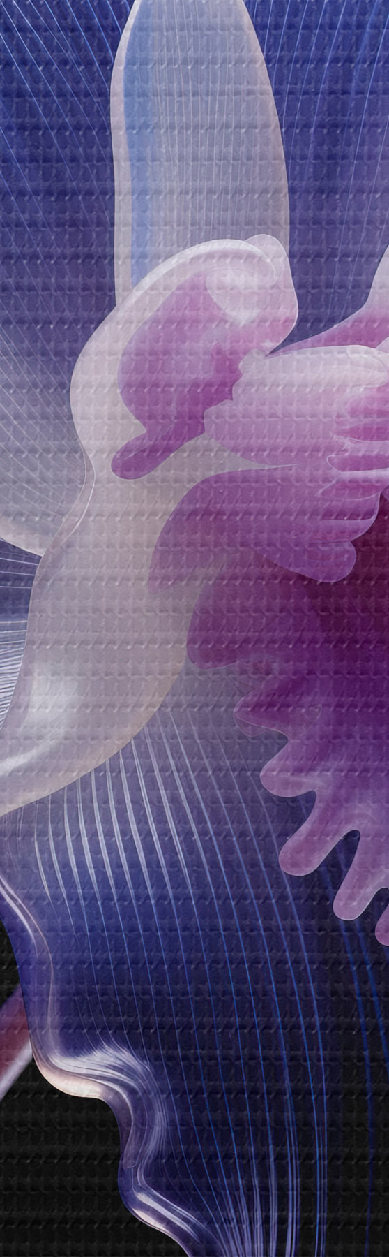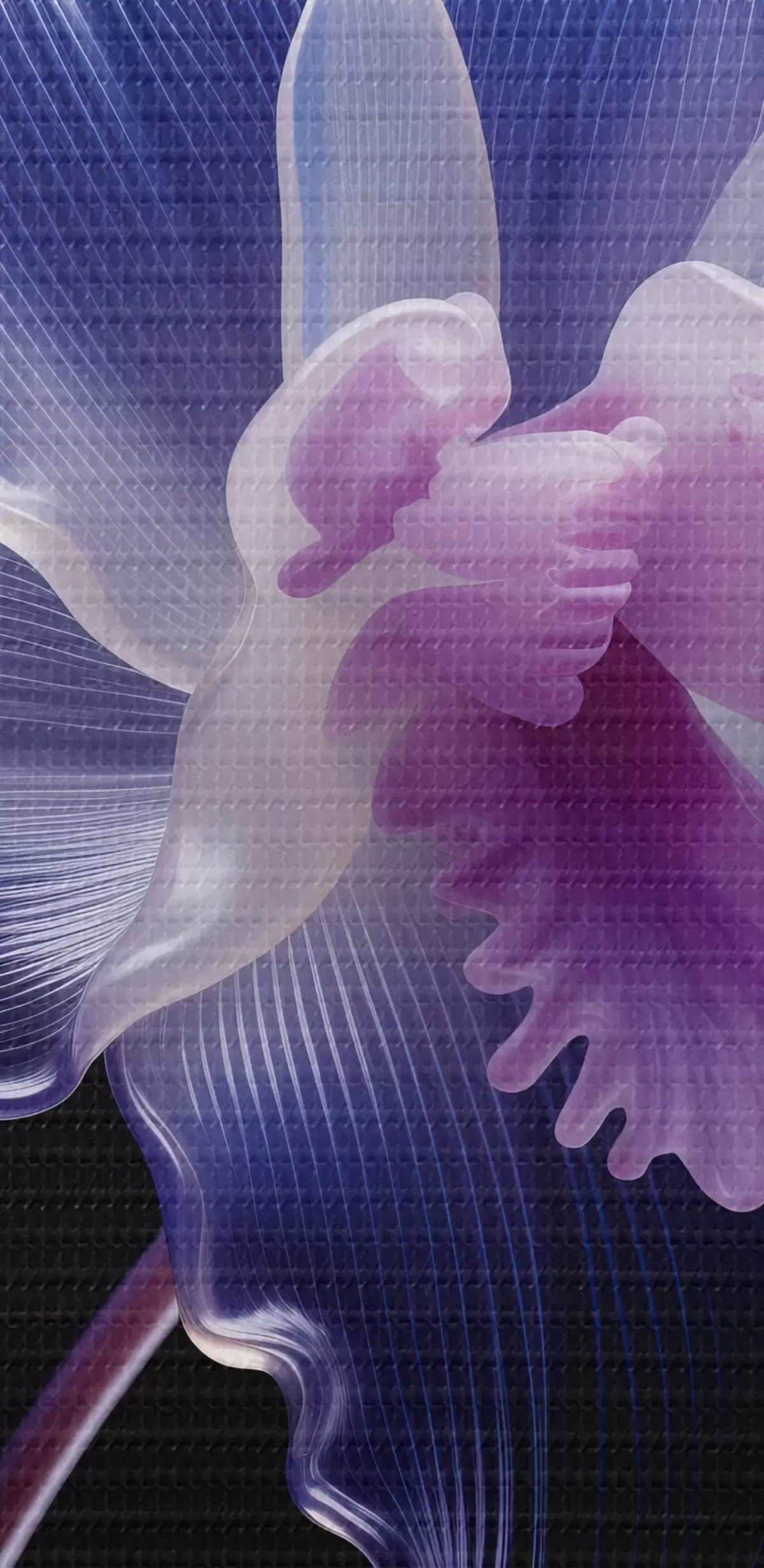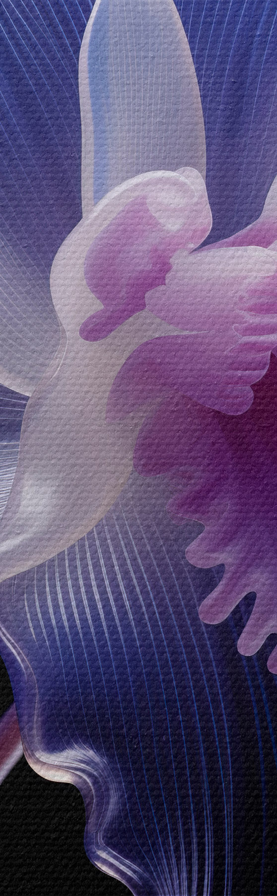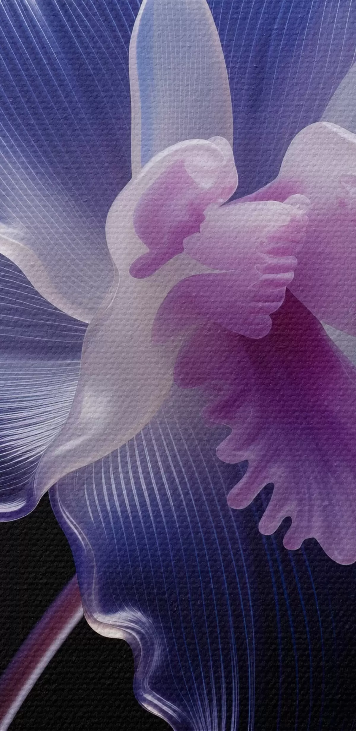 Wandbilder Transluzente Blütenblätter mit Adern auf schwarzem Hintergrund s44347